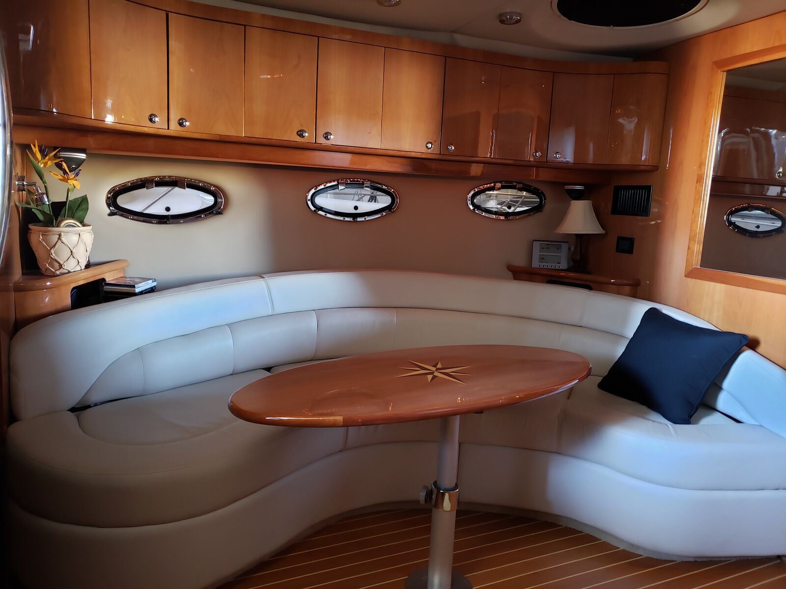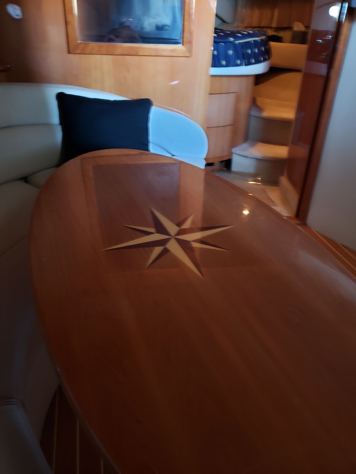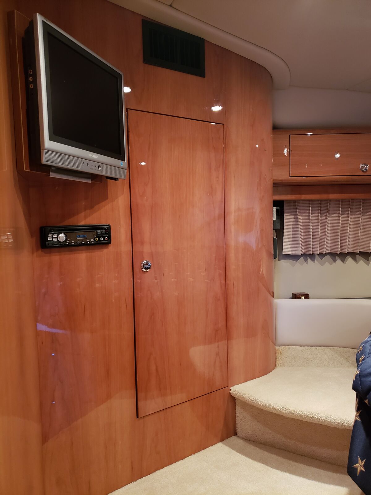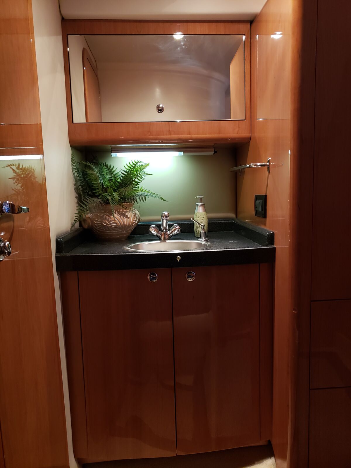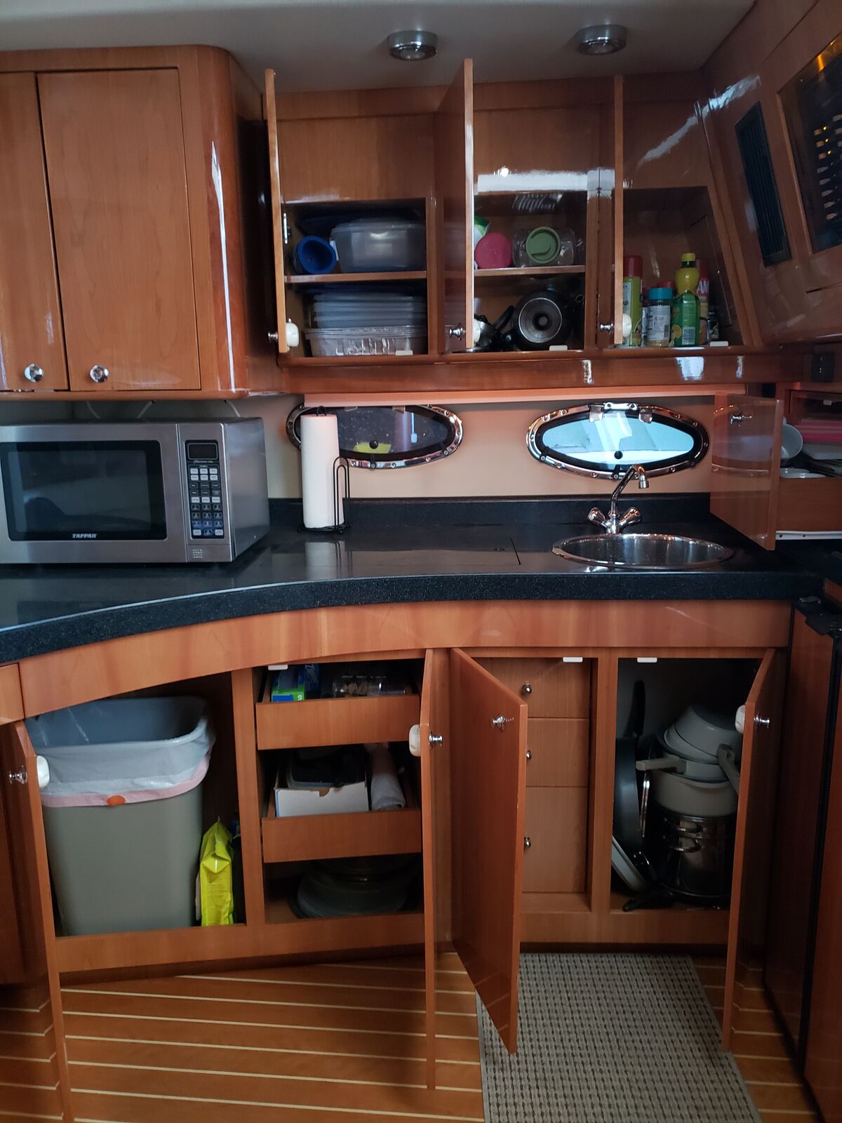 CORIAN COUNTERTOPS NATURAL CHERRYWOOD FINISHES, KENYON 2-BURNER CERAMIC GLASS ELECTRIC COOKTOP, MULTI USE CONVECTION GRILL MICROWAVE OVEN, AC/DC REFRIGERATOR/FREEZER. SURROUND SOUND ENTERTAINMENT. 9 FT U-SHAPED DINETTE SOFA THAT CONVERTS TO A SLEEPER. TWO PRIVATE STATEROOMS WITH THEIR OWN TELEVISION. MASTER HAS A QUEEN V-BERTH AND GUEST HAS 2 TWINS THAT CONVERT TO A FULL. BEDROOMS HAVE THEIR OWN SEPARATE HEADS WITH A VACUFLUSH TOILET, SHOWER AND SINK. AIR CONDITIONING TO SLEEP IN COMFORT.