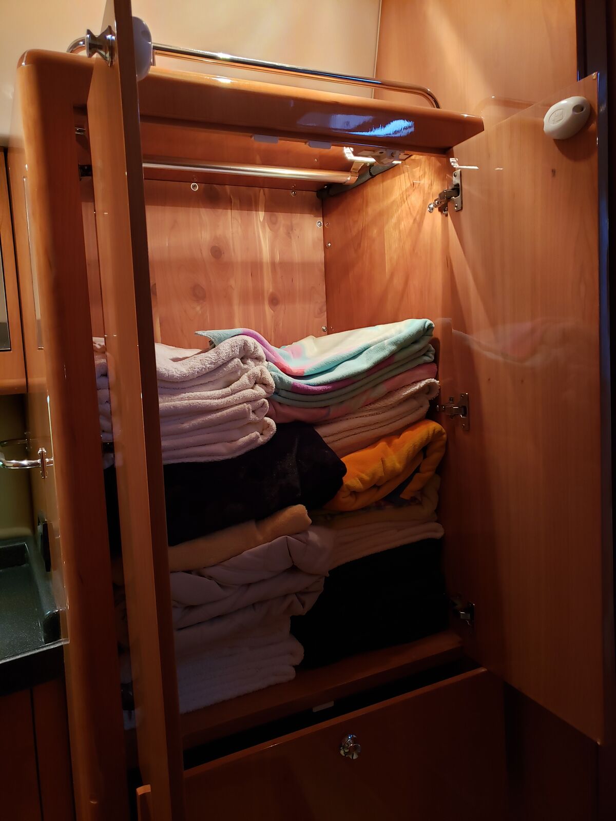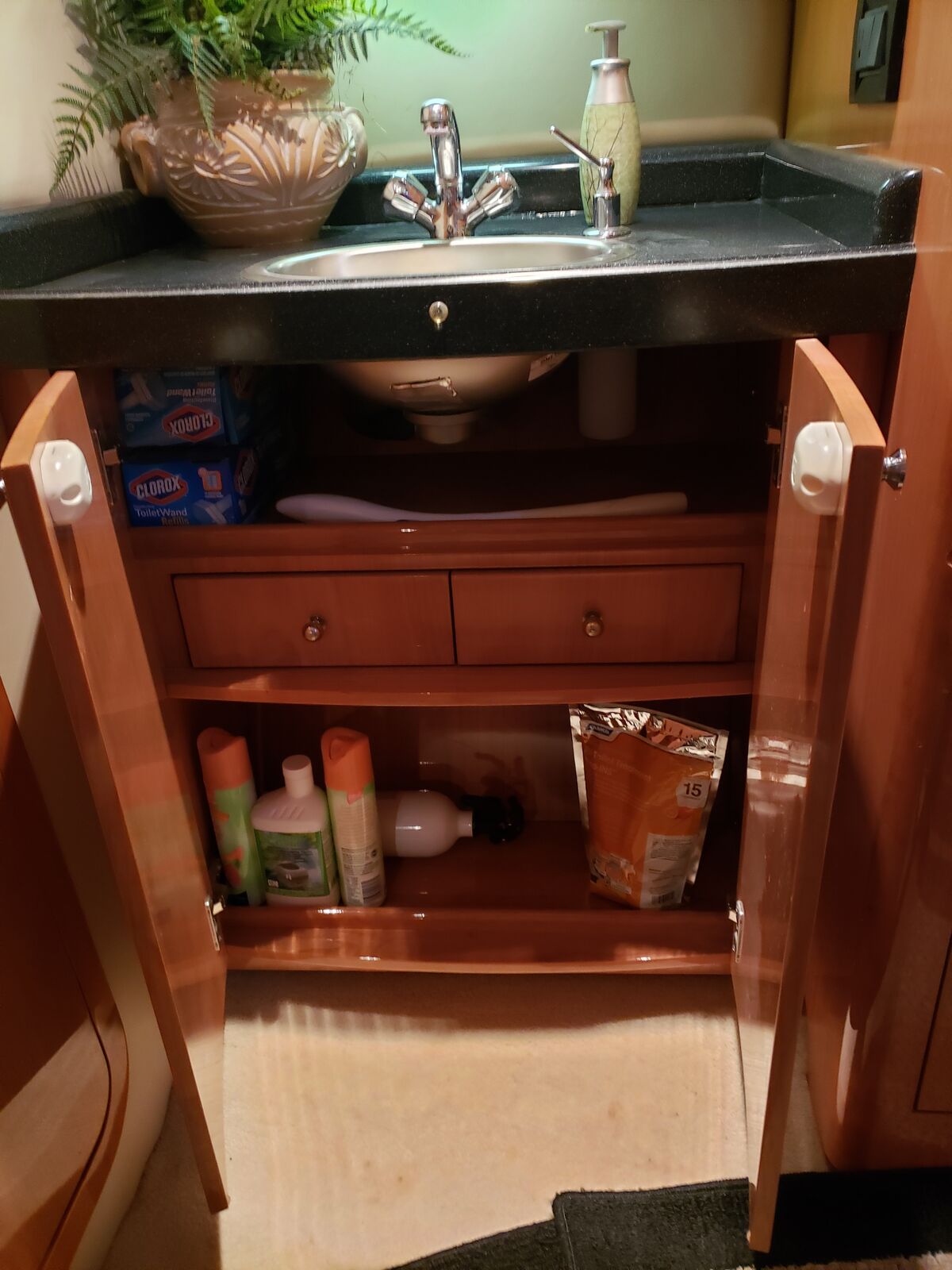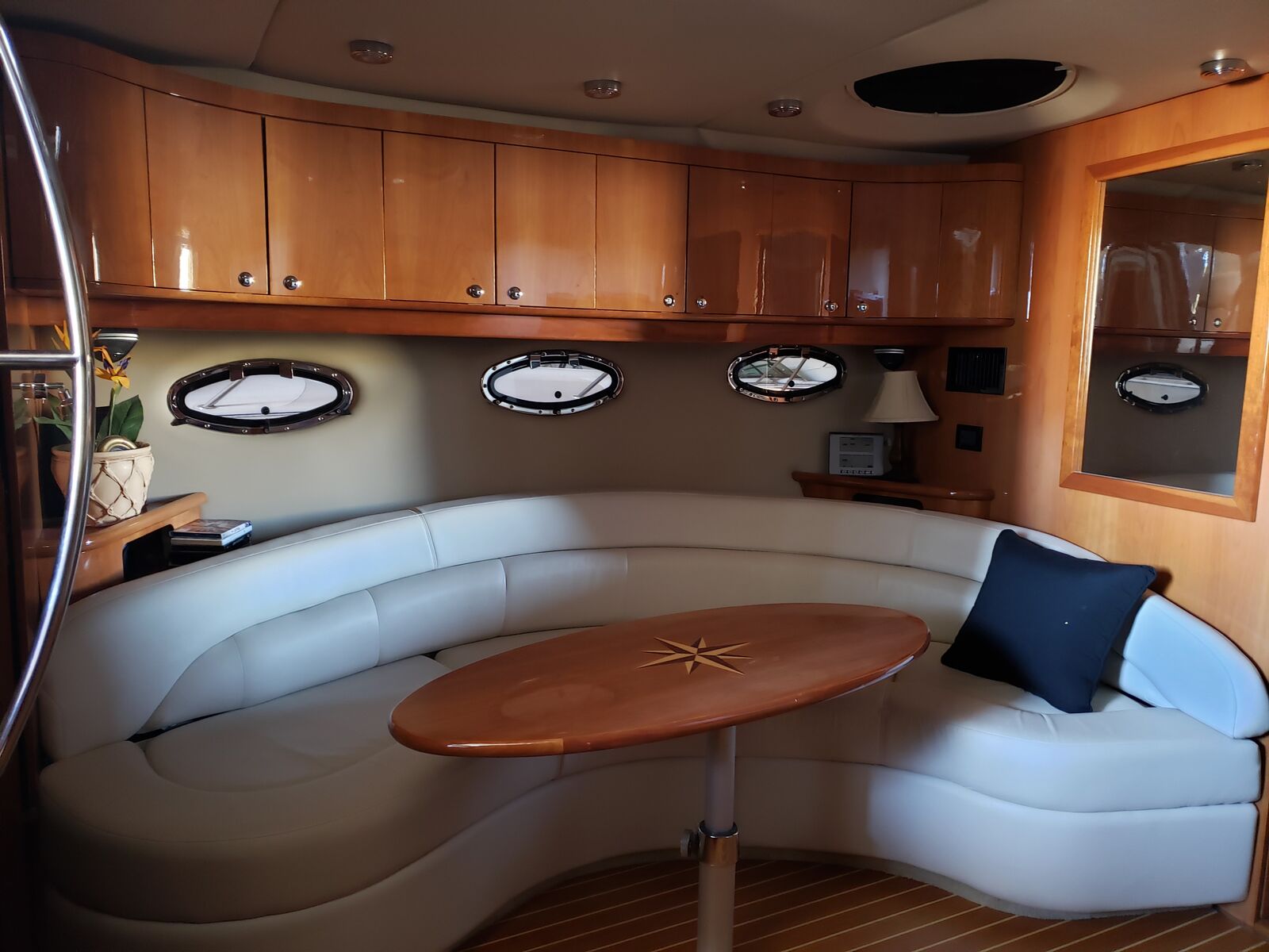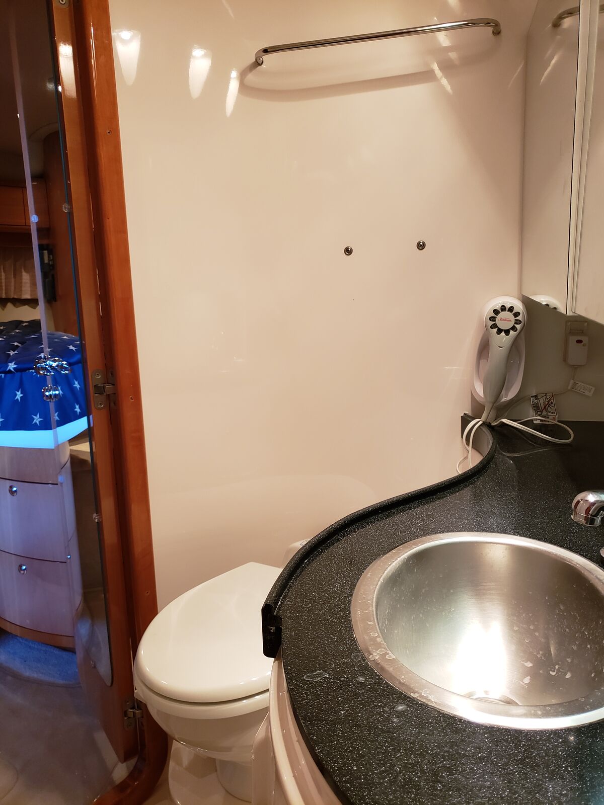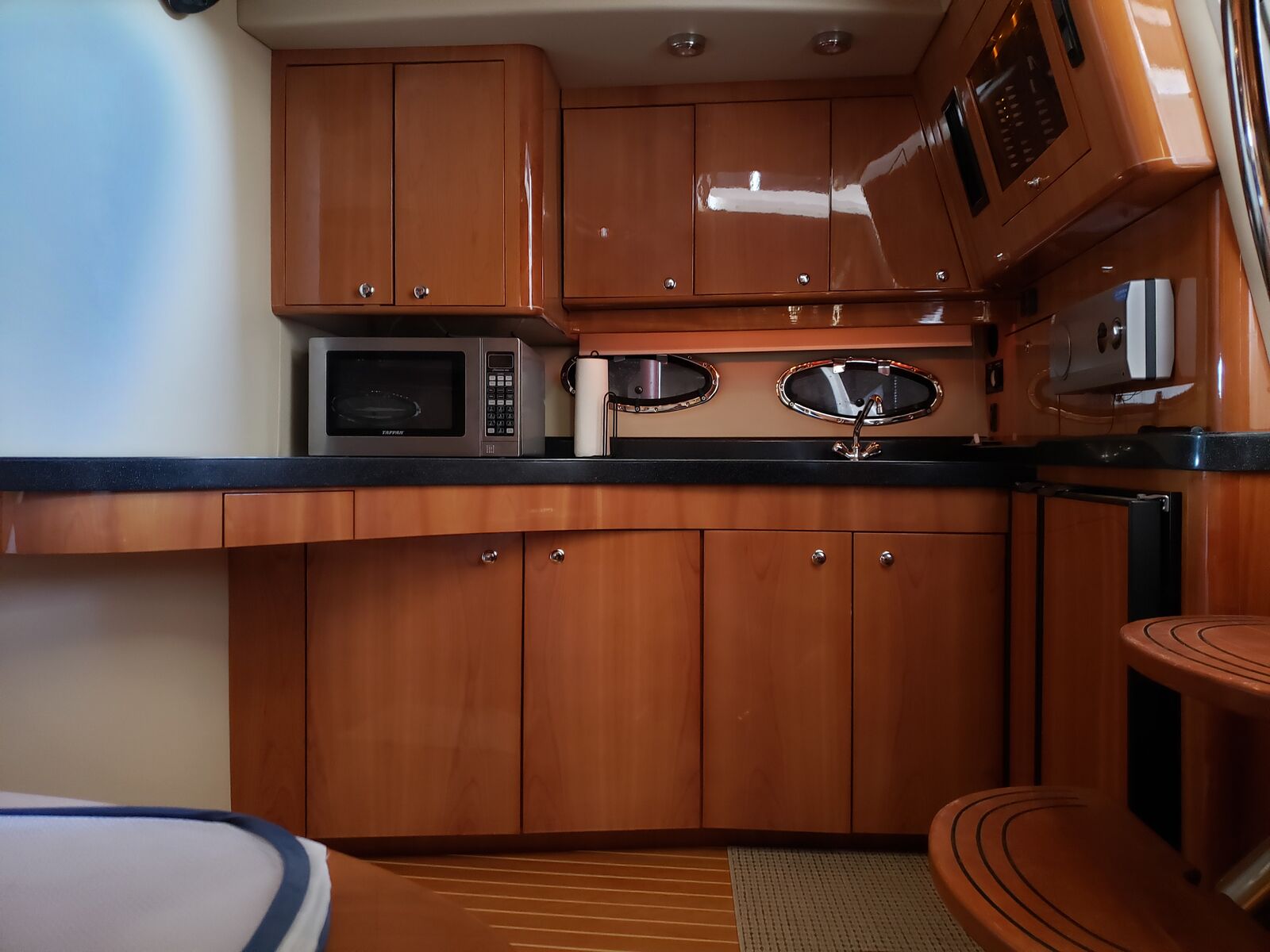 CORIAN COUNTERTOPS NATURAL CHERRYWOOD FINISHES, KENYON 2-BURNER CERAMIC GLASS ELECTRIC COOKTOP, MULTI USE CONVECTION GRILL MICROWAVE OVEN, AC/DC REFRIGERATOR/FREEZER. SURROUND SOUND ENTERTAINMENT. 9 FT U-SHAPED DINETTE SOFA THAT CONVERTS TO A SLEEPER. TWO PRIVATE STATEROOMS WITH THEIR OWN TELEVISION. MASTER HAS A QUEEN V-BERTH AND GUEST HAS 2 TWINS THAT CONVERT TO A FULL. BEDROOMS HAVE THEIR OWN SEPARATE HEADS WITH A VACUFLUSH TOILET, SHOWER AND SINK. AIR CONDITIONING TO SLEEP IN COMFORT.
