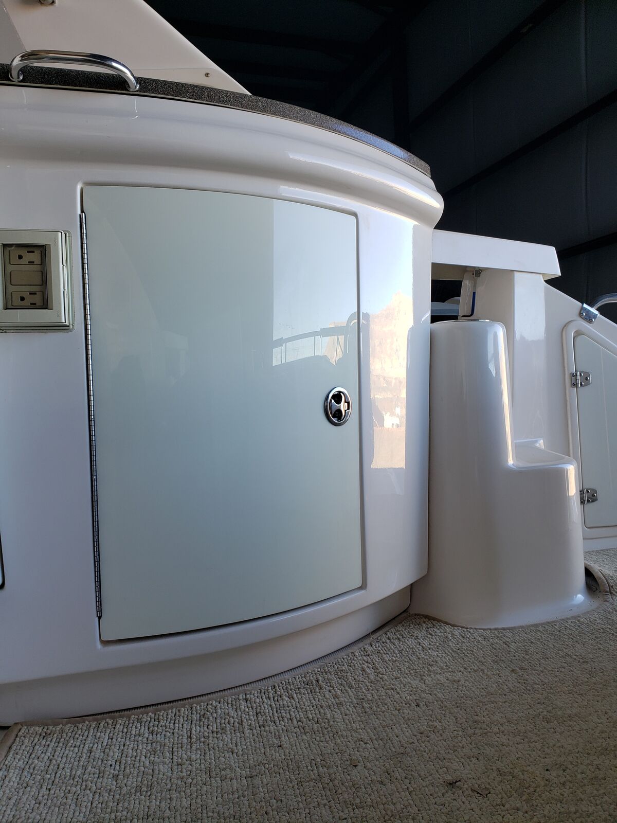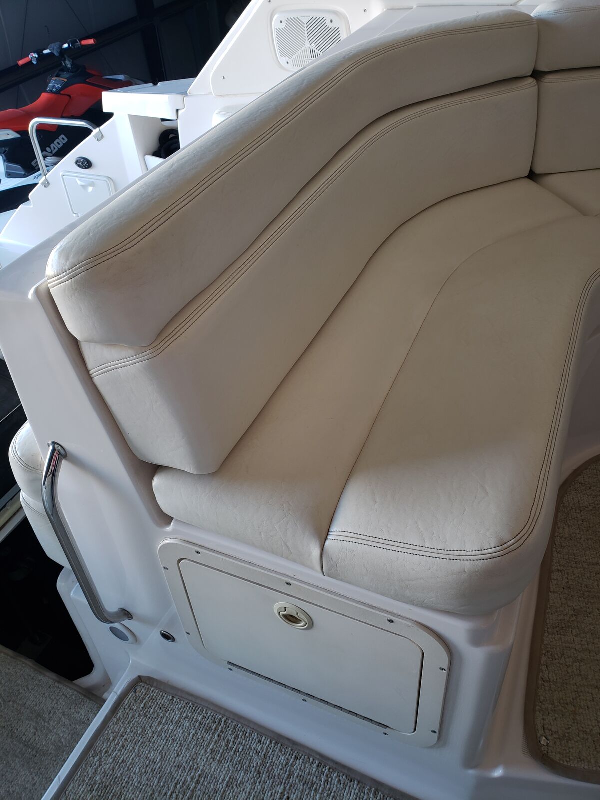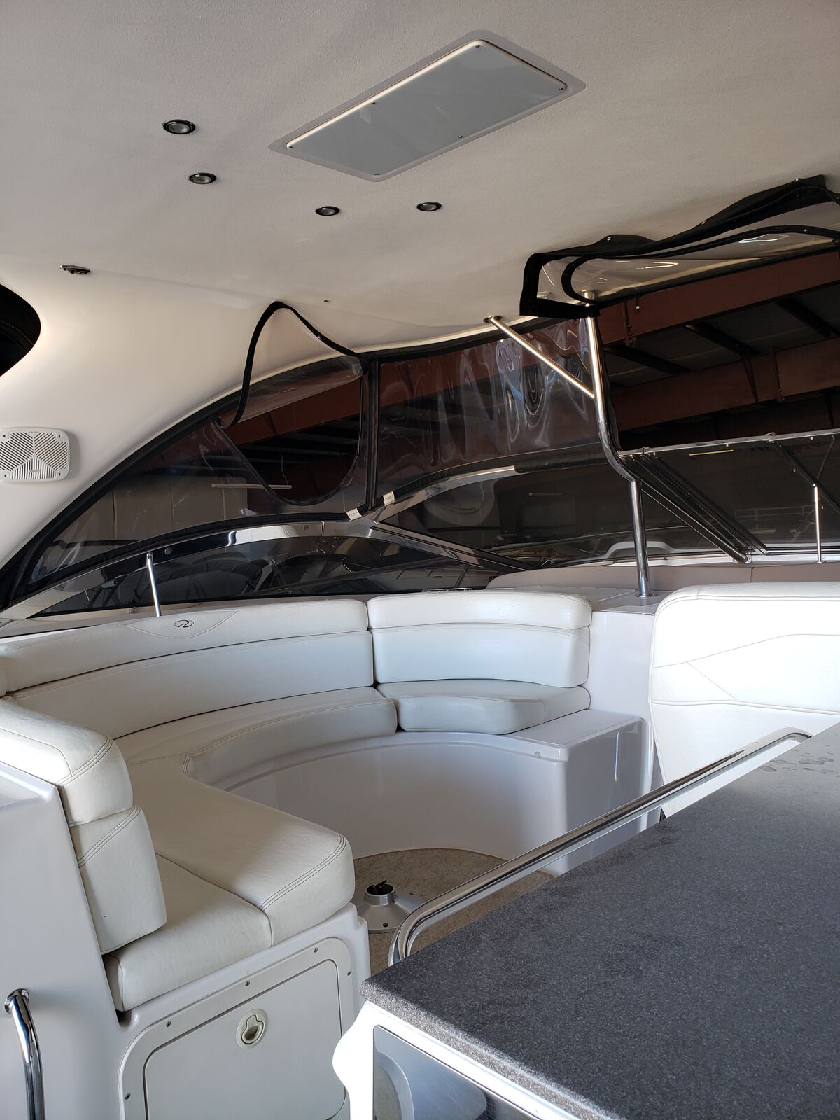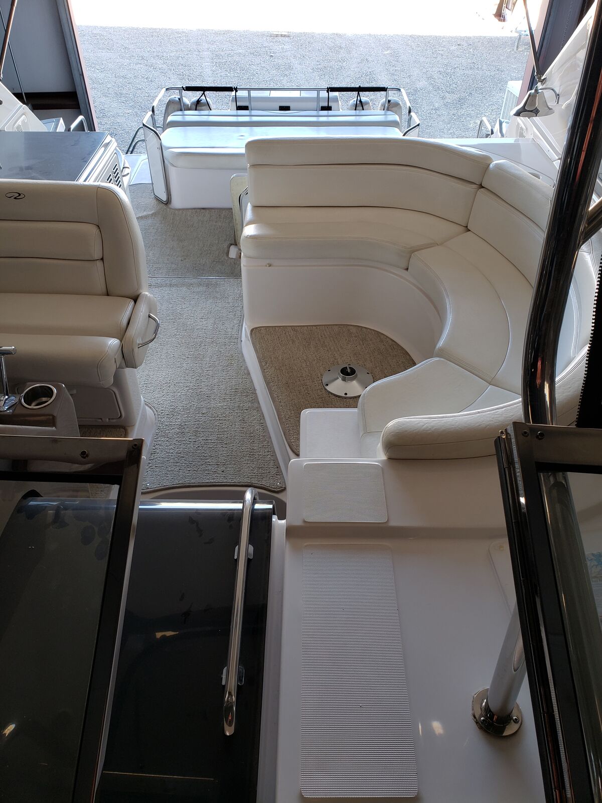 EXTENDED FIBERGLASS SWIM PLATFORM WITH LADDER. HOT AND COLD SHOWER/WASHDOWN, SNAP- IN CARPET, WET BAR WITH BUILT IN GAS GRILL. U-SHAPED DINETTE SEATING, DOUBLE CAPTAINS BENCH SEAT & AFT BENCH & SUNPAD WITH STORAGE. EISENGLASS ENCLOSURE. BOW SUN PADS WITH FLIP UP BACKRESTS & SUN COVERS. BOW PULPIT & ELECTRIC WINDLASS.