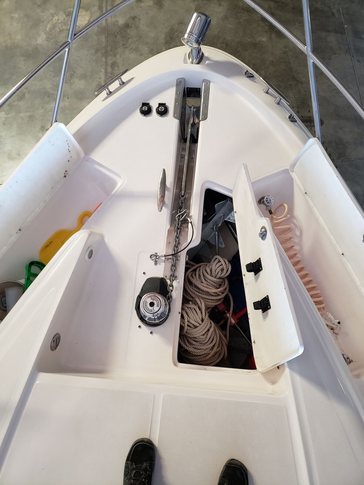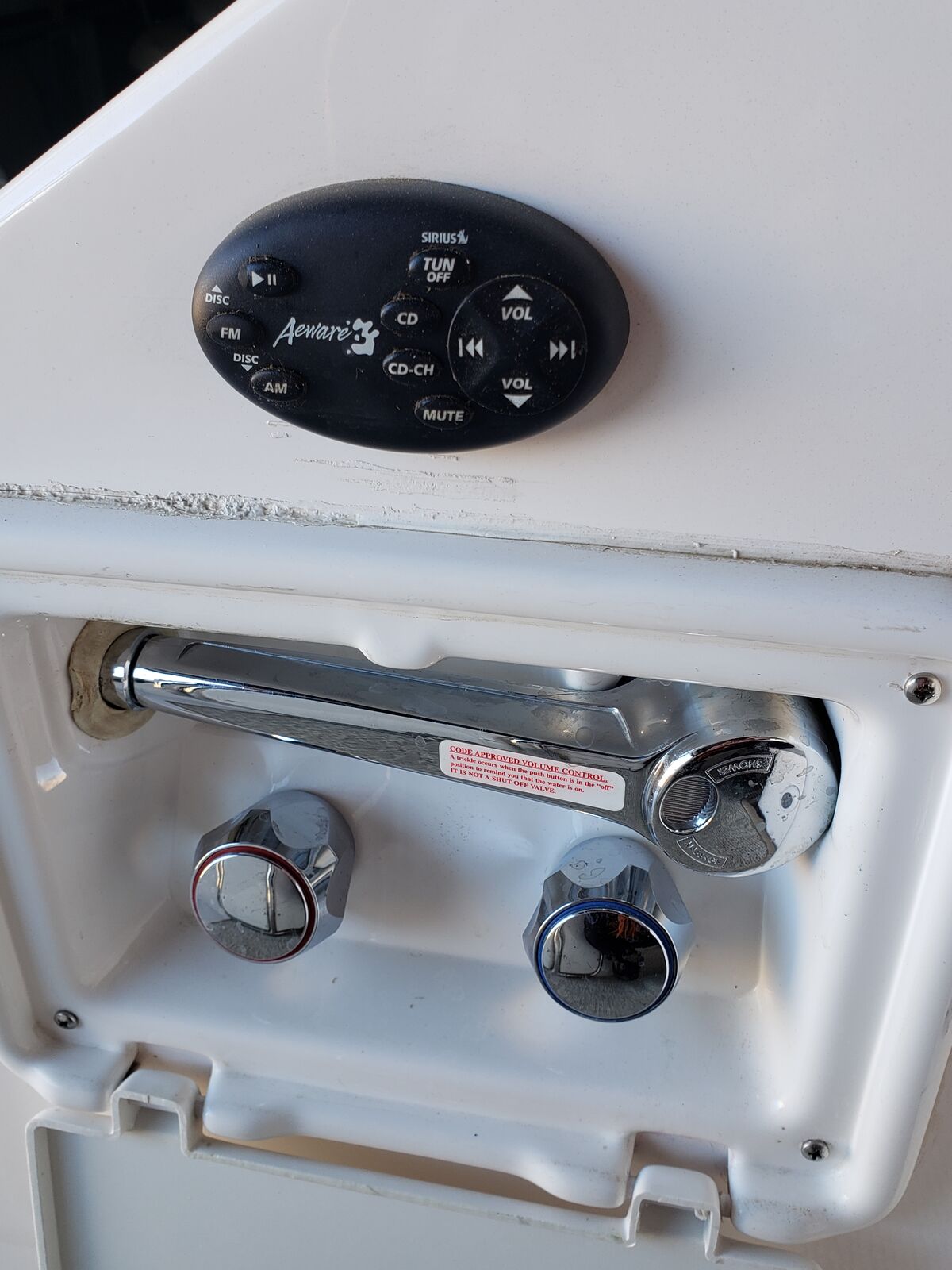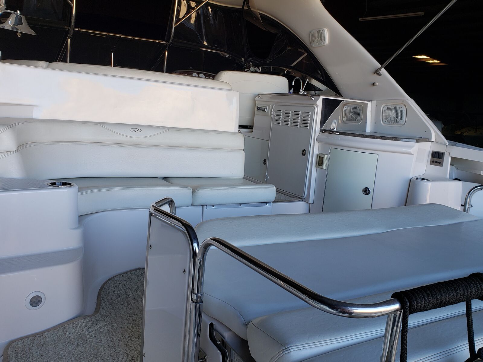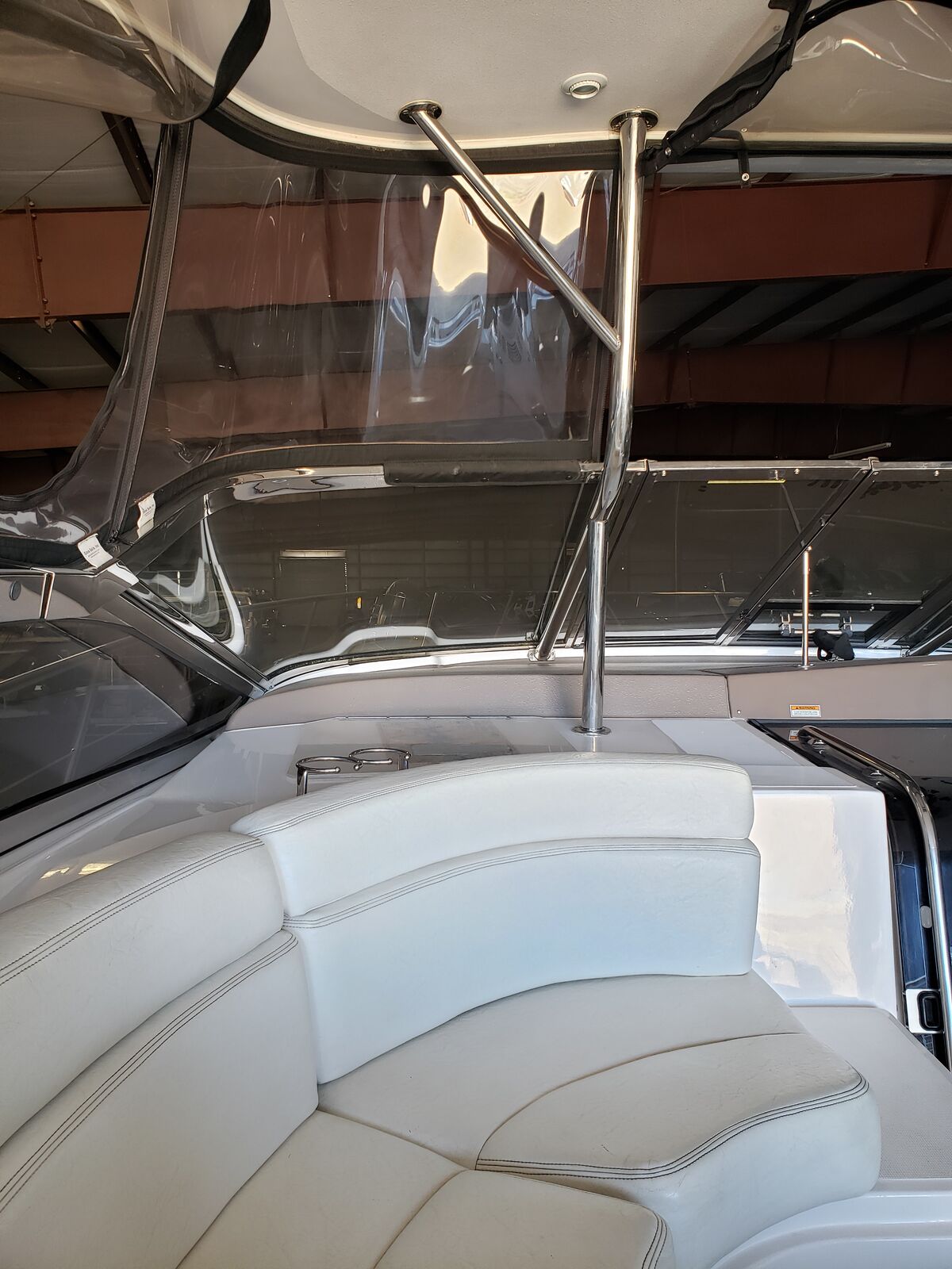 EXTENDED FIBERGLASS SWIM PLATFORM WITH LADDER. HOT AND COLD SHOWER/WASHDOWN, SNAP- IN CARPET, WET BAR WITH BUILT IN GAS GRILL. U-SHAPED DINETTE SEATING, DOUBLE CAPTAINS BENCH SEAT & AFT BENCH & SUNPAD WITH STORAGE. EISENGLASS ENCLOSURE. BOW SUN PADS WITH FLIP UP BACKRESTS & SUN COVERS. BOW PULPIT & ELECTRIC WINDLASS.