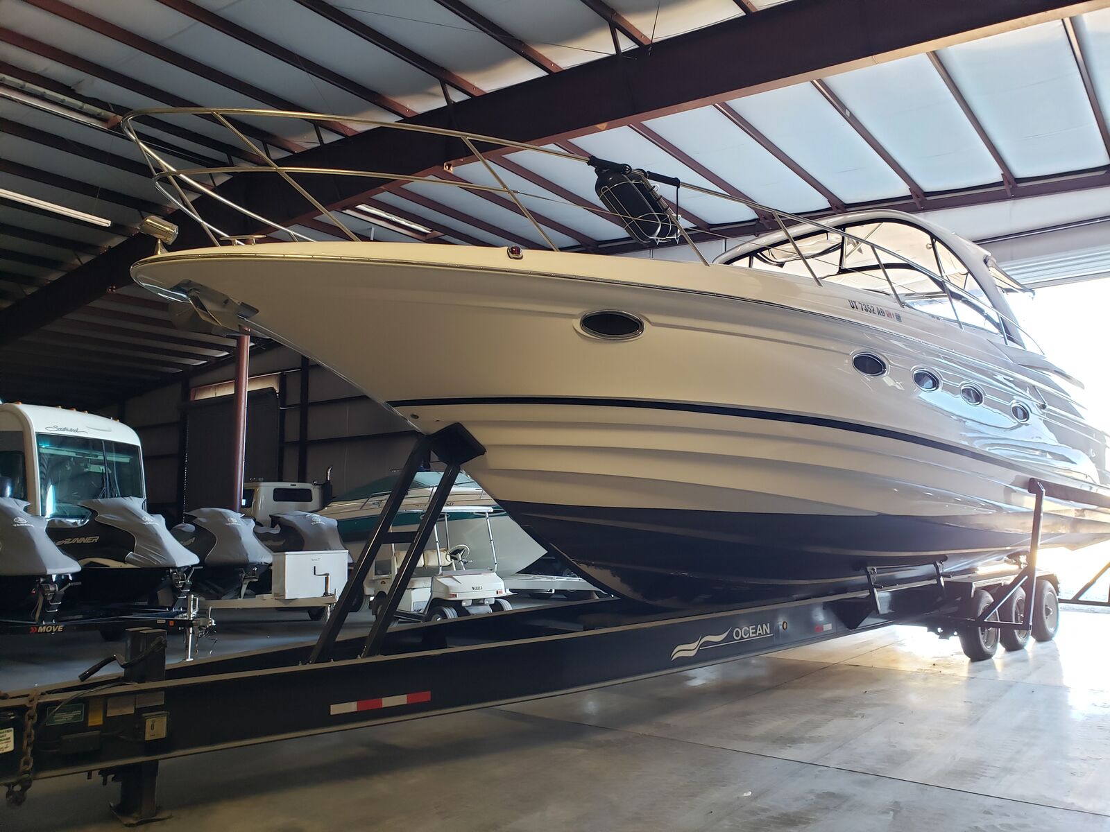 CLEAN ONE OWNER, FRESH WATER-LAKE POWELL BOAT WITH LOW HOURS. PRICE INCLUDES TRIPLE AXLE WILLIAMSON OCEAN TRAILER. BOAT HAS BEEN STORED INDOORS AND MAINTAINED BY BIG WATER BOAT STORAGE SINCE IT WAS PURCHASED NEW IN 2006. EXTENSIVE RECORDS ON FILE. POWERED BY TWIN VOLVO 8.1 GXII-G (420 HP) GASOLINE ENGINES (421 & 371 HOURS). KOHLER 7.5 EKD GENERATOR (671 HOURS).