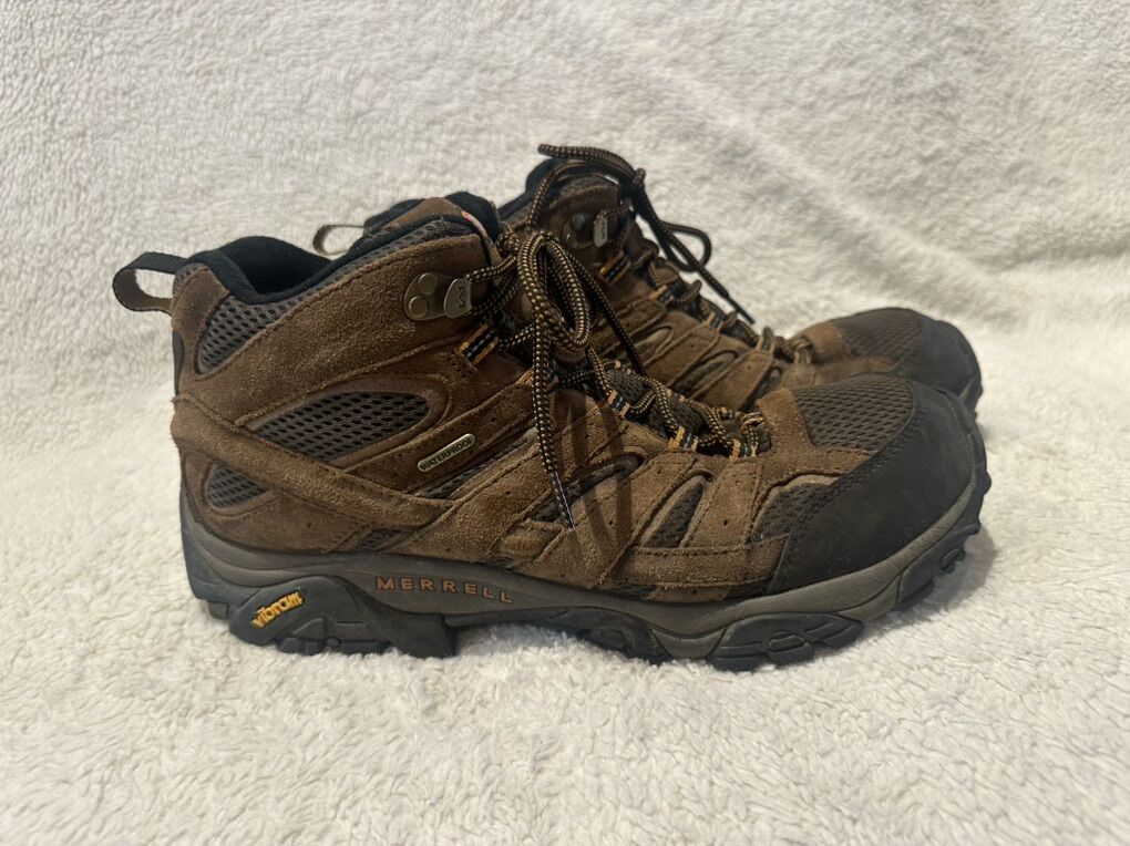Merrell earth men’s size 12.5 brown with orange trim, mesh and Leather waterproof mid hiking boots. These are in good condition, see photos for details. I take cash or Venmo, but cash is preferred. Text is best. 8012014446. Check out my other ads for additional sizes and styles.
