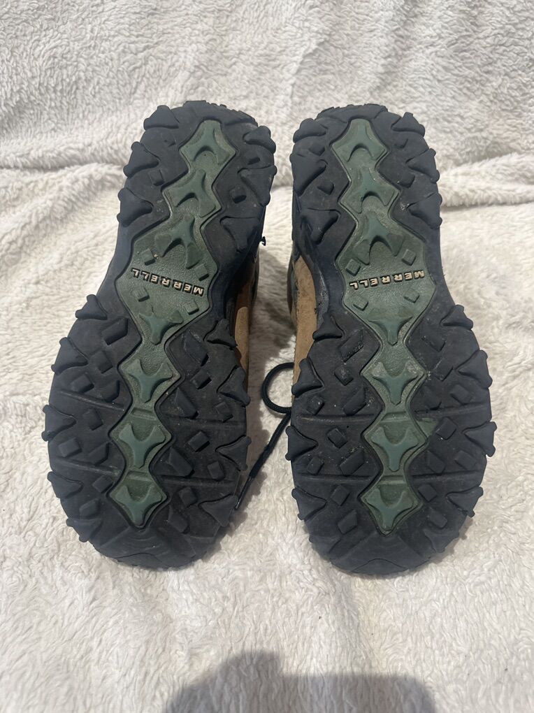 Merrell women’s size 7 wear them out beige/forest green leather waterproof mid hiking boots. These are in good condition, see photos for detail details. Might take cash or Venmo, but cash is preferred. Text is best. 801-2014446. Check out my other ads for additional sizes and styles.
