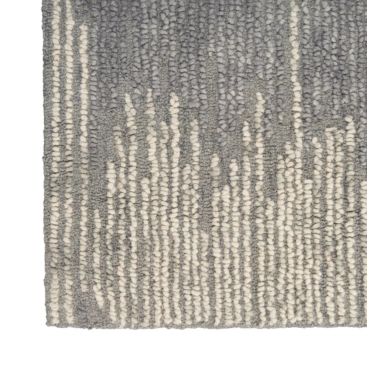 Bring movement and energy to your space with this modern rug from the Colorado Collection. The textured surface showcases a mixed gray and ivory abstract design. Hand-tufted from 100% wool, a naturally renewable fiber that’s easy to clean.