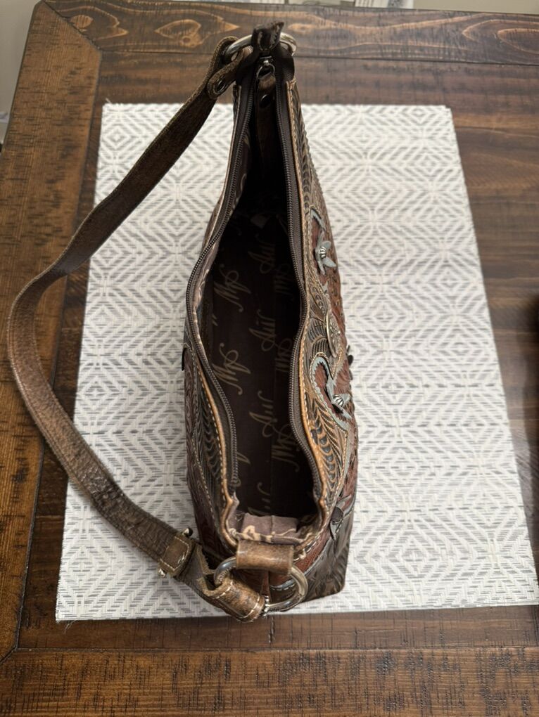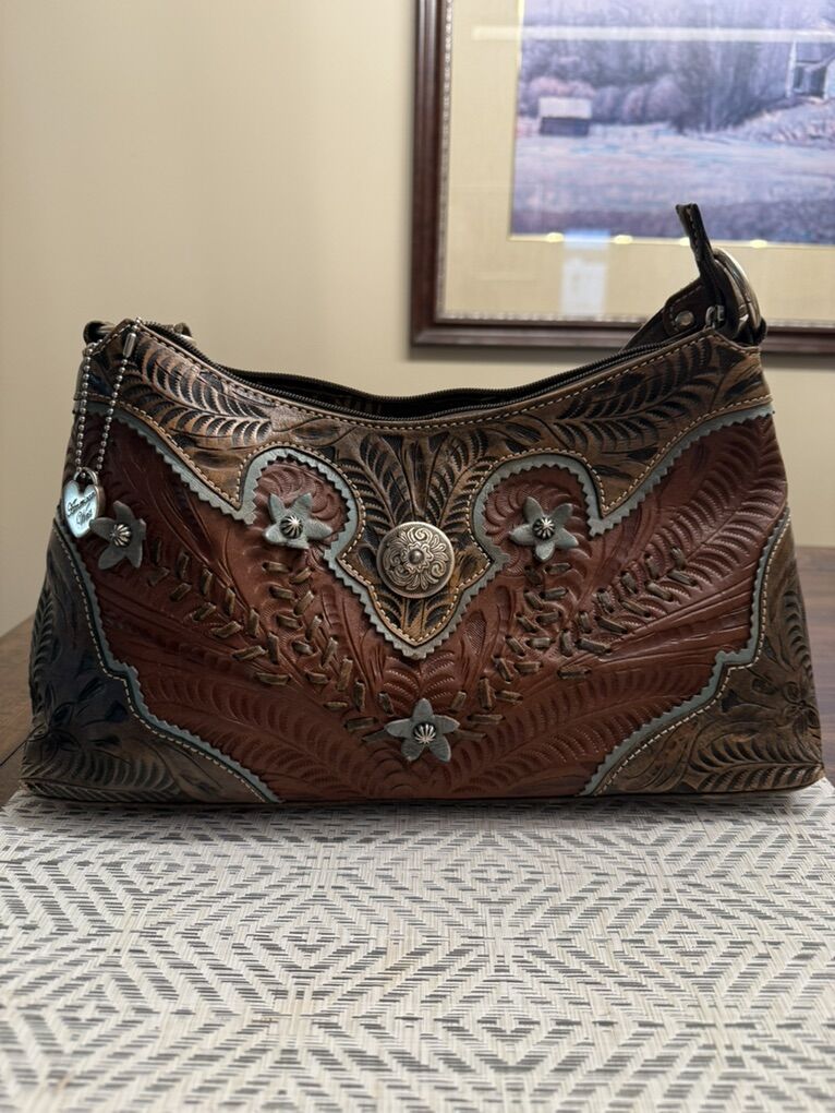VenmoHand tooled leather shoulder bag with silver conchos. Retails for $178 on American West website. Lightly used. Like new. Asking $120.