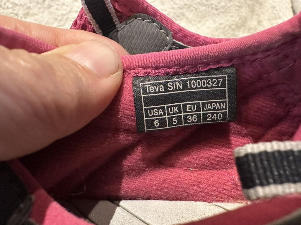 Teva women’s size 6 pink/gray water or hiking sandals in barely used condition. See photos for details. I take cash or Venmo, but cash is preferred. Text is best. 801-201-4446. Check out my other ads for additional sizes and styles.
