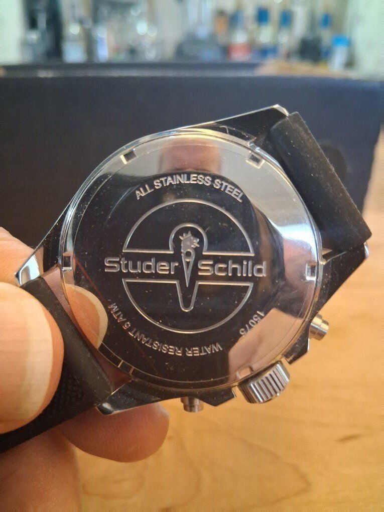 PayPalThis watch has been worn once, and is in like new condition. The Men Studer Schild Chronograph Morse Watch features a stainless steel case with a silver face and red and black bezel. This watch has a maximum wrist size of 8.6-9 inches and comes with a buckle closure. The watch is designed for men and has a quartz movement with water resistance up to 50 meters. It includes features such as a 12-hour dial, luminous indexes, and a multi-function chronograph, making it suitable for both dress/formal and casual occasions. This stylish timepiece is a perfect choice for adult and teen men looking for a classic and functional watch.