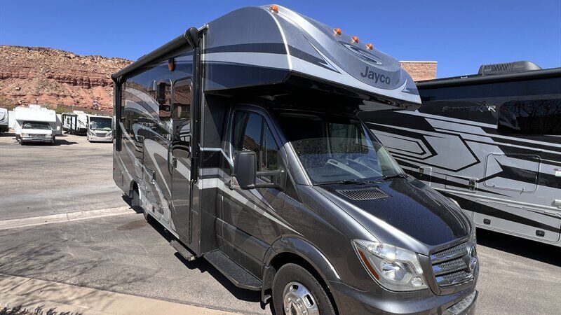 2018 JAYCO 24 L . THIS IS THE #1 FLOOR PLAN WITH A FULL WALL SLIDE. NEW PRICE $79,995.00 SHOP AND COMPARE.THIS IS A GREAT DEAL!! The 2018 Jayco Melbourne 24L is a Class C RV featuring a Mercedes-Benz Sprinter chassis with a V6 diesel engine. It offers a comfortable interior with features like theater seating A queen-size bed, and a full-wall slide for expanded space. The RV includes amenities like a convection microwave, a stainless steel sink, and a pass-through storage system. Key Features: - Drivetrain: Mercedes-Benz Sprinter chassis, V6 diesel engine with 188 horsepower. - Sleeping Capacity: Sleeps 4 - Slideouts: One full-wall slide. - Interior: queen-size bed, vinyl flooring, standard TV and DVD player, and rear video camera. - Kitchen: Convection microwave, stainless steel sink, two-burner propane stove, Norcold refrigerator/freezer. - Exterior: Slideout awning, power retractable entry steps, and pass-through storage. - Tanks: 43-gallon fresh water tank, 31-gallon gray and black water tanks, and a 9.8-gallon propane tank. -Onboard Onan LP Generator . -Full Body paint STOP BY PREMIER RV BROKERS AT 2705 S 60 E IN ST GEORGE UT CALL OR TEXT Wade 435-229-3484 Dan 435-862-7589 office 435-673-5388