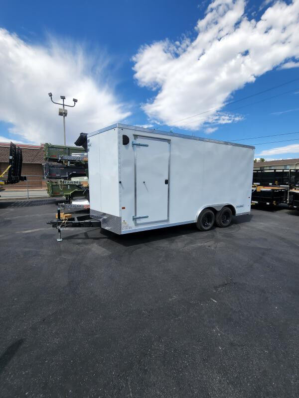 SPECS WIDTH: 100" LENGTH: 16' DOOR(S)/RAMP(S): Ramp WEIGHT: 2830 lb GVWR: 7000 lb PAYLOAD: 4170 lb AXLE(S): Tandem Axle COUPLER: 2 5/16"\