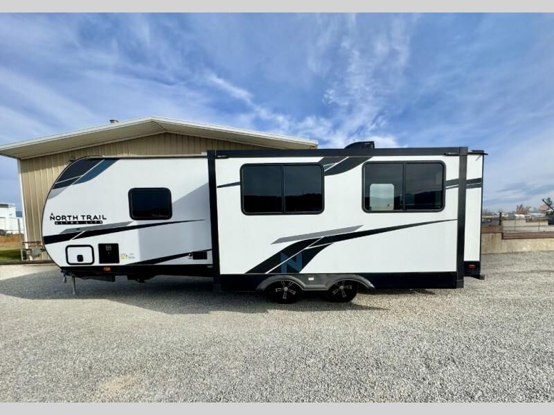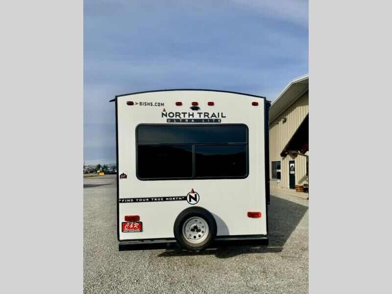 When you choose a North Trail travel trailer by Heartland you are choosing comfort, convenience, and quality craftsmanship at its best. The block foam brick insulation, enclosed and heated underbelly, plus Weather Guard thermal protection mean you can camp all year around. Each model features a Wide Trax suspension for a smooth ride, and the backup camera prep and solar prep make camping that much easier if you choose those options. Some of the other exterior features you will appreciate are the outside shower, the power stabilizer jacks and power tongue jack, and the outside speakers to keep the party going. Head inside to find stainless steel appliances, oversized windows, and premium flooring that is tear, slip, mold, mildew and cold crack resistant! You can't beat a North Trail travel trailer. Choose your favorite floorplan today!