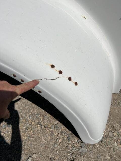 AUTOCAR AT64 HOOD ASSEMBLY, HAS DAMAGE 54.5" TO GRILLE SEAM FROM BACK OF HOOD ($200 Pallet Fee Shipping)