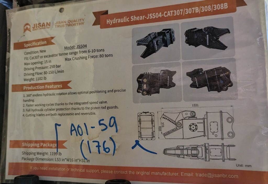 NEW BLEMISHED JISAN JSS04 SINGLE- CYLINDER HYDRAULIC SHEAR, SERIAL# 2210220282