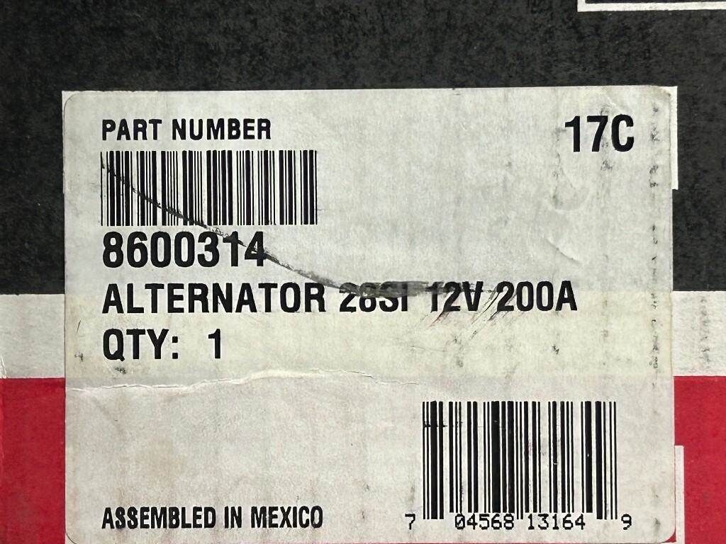 ALTERNATOR-28SI 200A 8600314 ALTERNATIVE PART# PRESTOLITE AV1160P2007 4939PGH A0014939PGH 4939AAH 4945AAH A28P200 SPECS Part Number 8600314 Status Active Model 28SI Type New Alternator Mount Type Pad System Voltage 12 Rated Output 200 Amps B+ Output Terminal 5/16 R Terminal #10 I Terminal #10 Remote Sense Terminal Yes Ground Terminal Negative