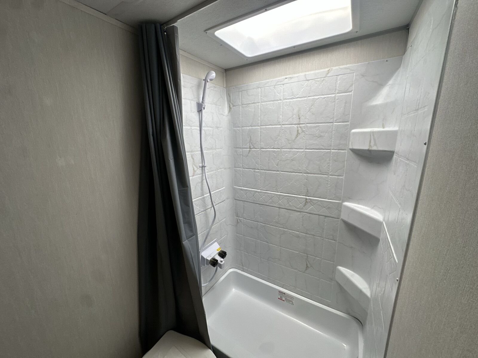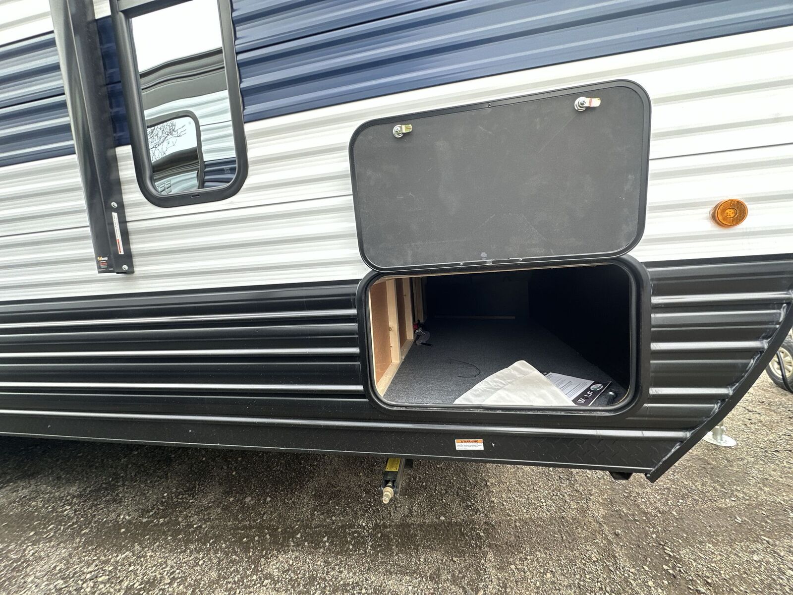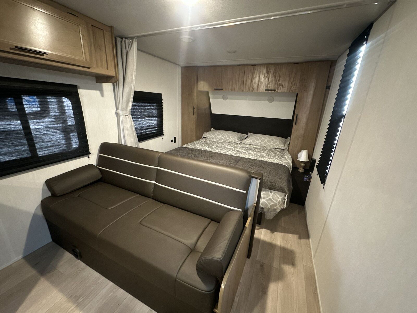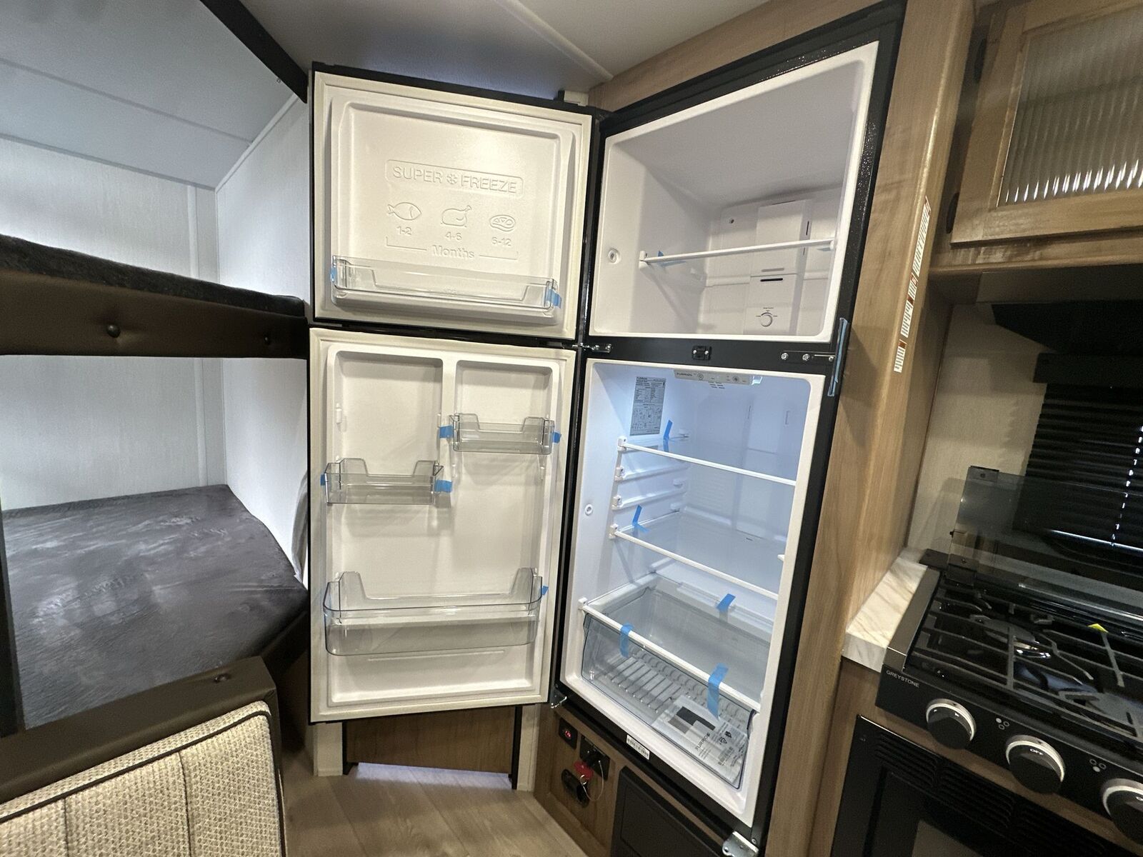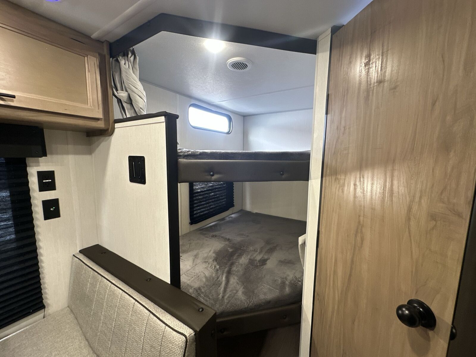Forest River Cherokee Grey Wolf travel trailer 26DJSE highlights: Walk-Around RV King Bed Rear Storage Rack Full Bath Air Fryer If you like to camp with more friends and family, this travel trailer is for you! Since there are double-size bunks, a queen bed, plus a sofa and booth dinette, you can sleep eight people each night! The front bedroom includes the RV king bed, along with dual bedroom wardrobes and USB ports to charge your phones overnight. A full kitchen, complete with an air fryer and refrigerator will let the chef do their thing, and everyone can head outdoors to sit under the 15' patio awning! Whether it's a journey that will take you to new locations or a tried-and-true getaway to that favorite and memorable destination, the Forest River Cherokee Grey Wolf travel trailers and toy haulers are going to make the trip worth it every single time! You can travel in confidence with the premium wheel package, seamless roofing membrane with heat reflectivity, Power Gear frame technology with space-saver rail design, and Cherokee back-up camera system. The Cherokee Grey Wolf's interior is highly attractive with its stainless steel kitchen suite package and premium bedding ensemble and comforter. You will also find a black waste tank flush-out kit, an outside shower with hot and cold water, an armored underbelly tank enclosure, and an RV grill quick connect.