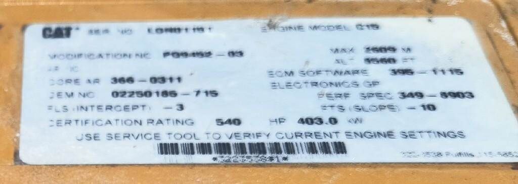 02250185-715 CAT C15 ACERT, SINGLE TURBO 540HP, SER# LDN01151