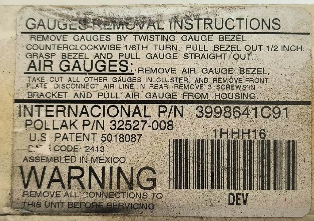 3998641C91 CLUSTER INSTRUMENT LEFT ENGINE COOLANT TEMPERATURE ENGINE OIL PRESSURE