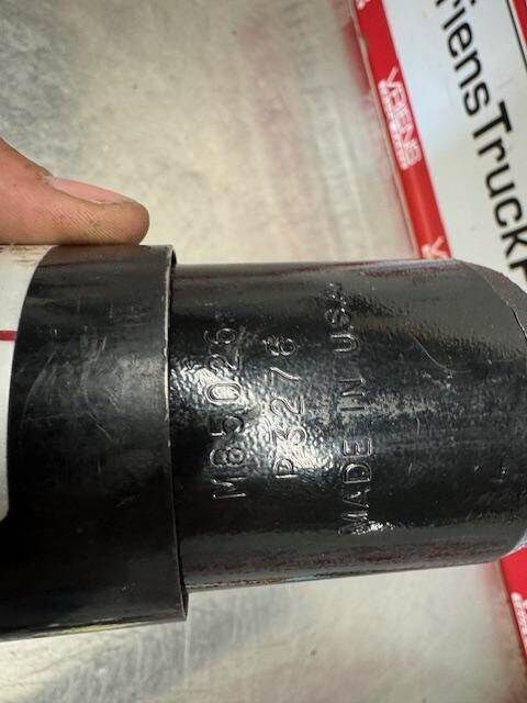 M85026 SHOCK-ABSORBER NOT IN ORIGINAL PACKAGE NO HARDWARE Meritor Shock Absorber M85026 Cross References Volvo 1093178 Replaces Volvo V1093178 Body Diameter (in.): 2.19 in. Body Diameter (mm): 55.5 mm Bore (in.): 1.63 in. Bore (mm): 41 mm Collapsed Length (mm): 355.4 mm Collapsed Length (in.): 13.99 in. Dust Shield Diameter (in.): 2.50 in. Dust Shield Diameter (mm): 63.5 mm Extended Length (in.): 23.02 in. Extended Length (mm): 584.8 mm Family Code: 41FCST Hydraulic Stop: No Stroke: 229.4 mm Stroke Inch: 9.03 in.