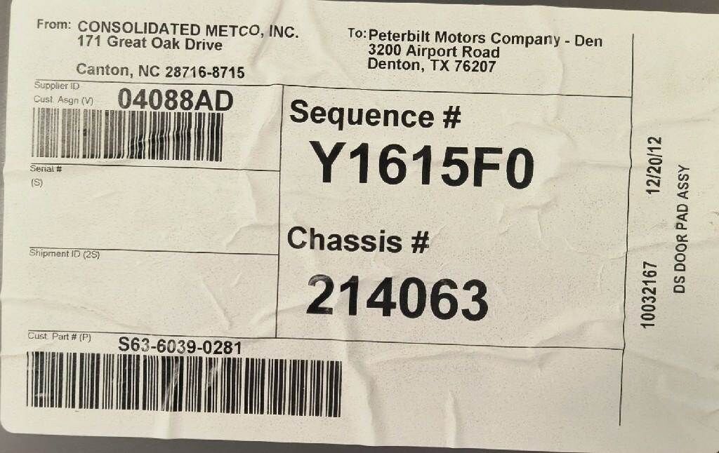 S63-6039-0281 PAD-DOOR LH ELECT WINDOW DK GRAY S63-6040-0281 PAD-DOOR RH ELECT WINDOW DK GRAY PAIR