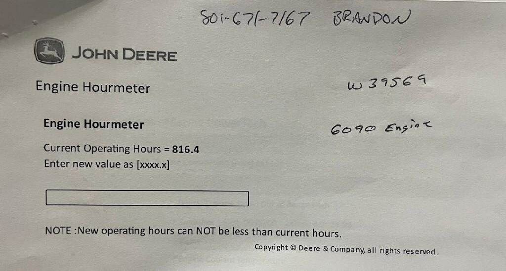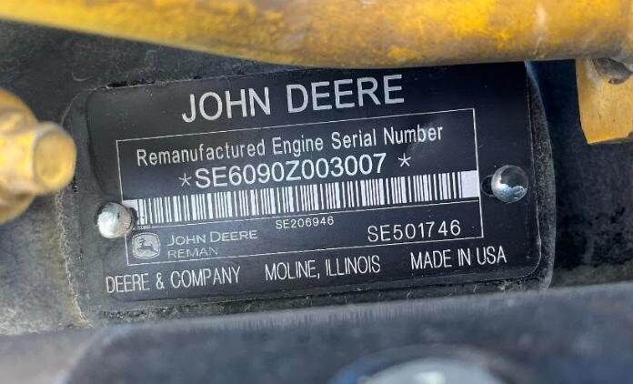 JOHN DEERE 6090 24 VALVE, TURBO DIESEL ENGINE, USED WITH REMAN TAG, 816.4 HOURS