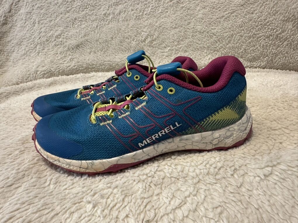 Merrell Moab flight youth size 2 blue with yellow and plum trim, hiking shoes. These are in like new condition, see photos for details. I take cash or Venmo, but cash is preferred. Text is best. 8012014446. Check out my other ads for additional sizes and styles.
