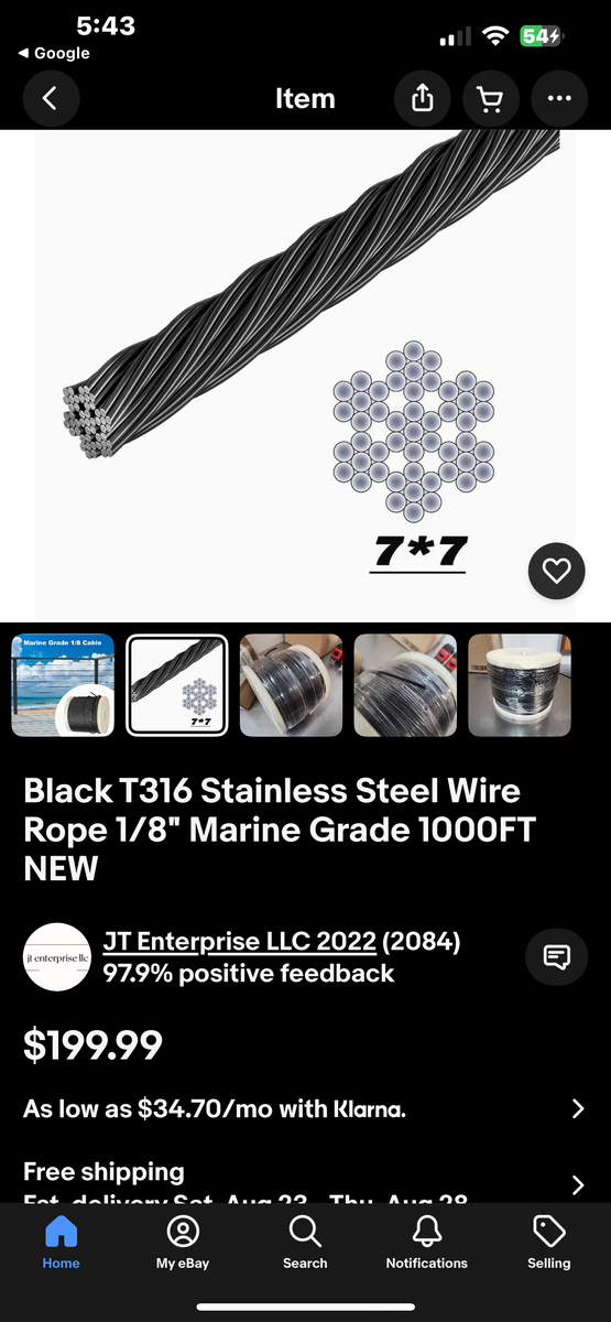 250FT 1/8" Black Stainless Steel Cable with Cutter, T316 Marine Grade, Stainless Steel Wire Rope 7x7 Strand Construction