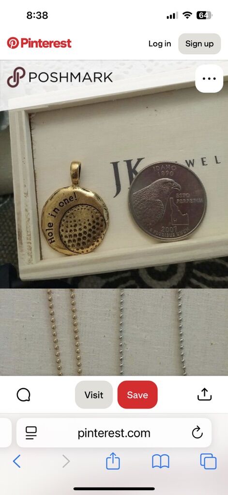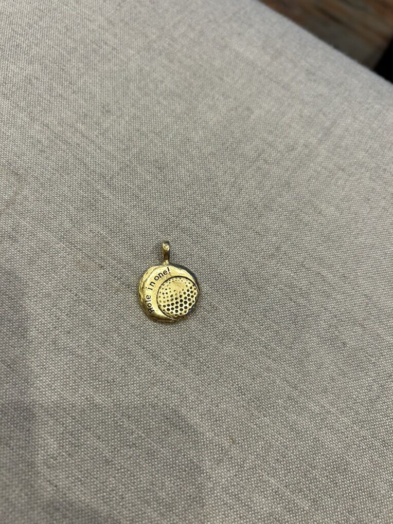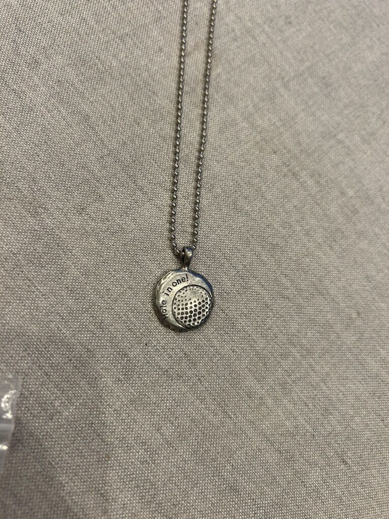 VenmoIn excellent condition from Jewel Kade two golf ball pendants, one in silver tone one in gold tone with silver tone ball chain. Stamped with JK on the back of each pendant.  says hole in one on the front and has Dimpling similar to a golf ball.  clean smoke free home. Cash or Venmo pick up in Alpine.