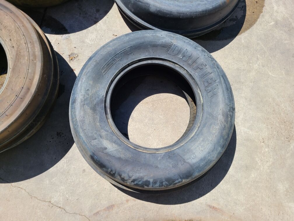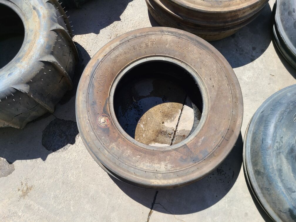 Up first is a set of six 28" UTV sand tires / paddles for 14" wheels. There is a pair of Front GMZ Sand Stripper 28x10R14 front tires, a pair of STI Sand Drifter 28x12R14 front tires, and a pair of STI Sand Drifter 28x13R14 rear paddles. We are asking $300 for all 6 sand tires.