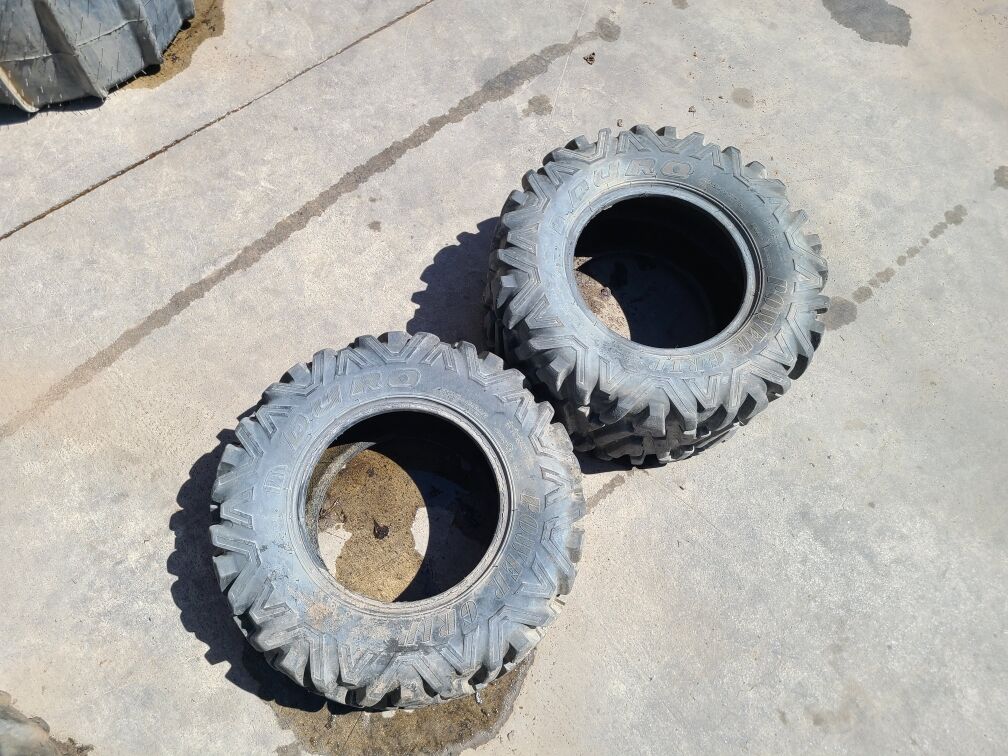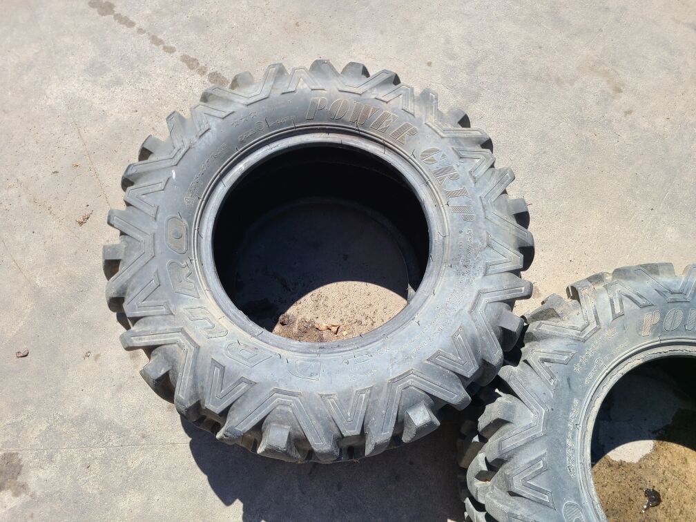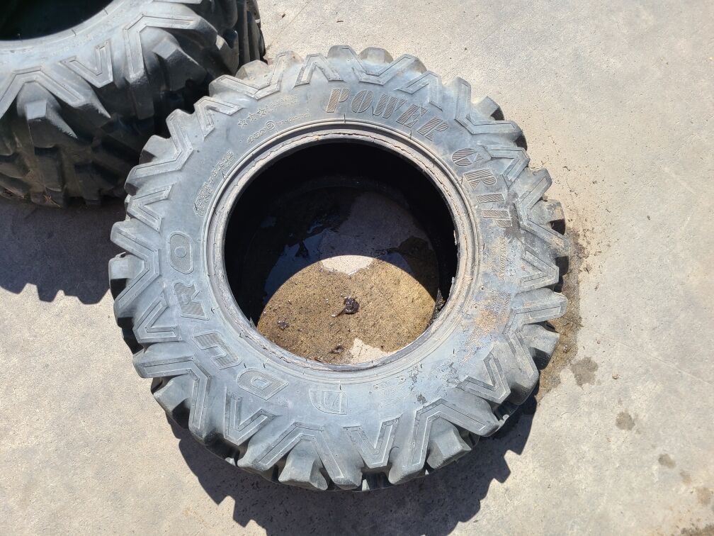 We also have a pair of Duro Power Grip tires that would be good for spares. One is a 25x8R12 and the other is 25x10R12. We are asking $25 each for these.