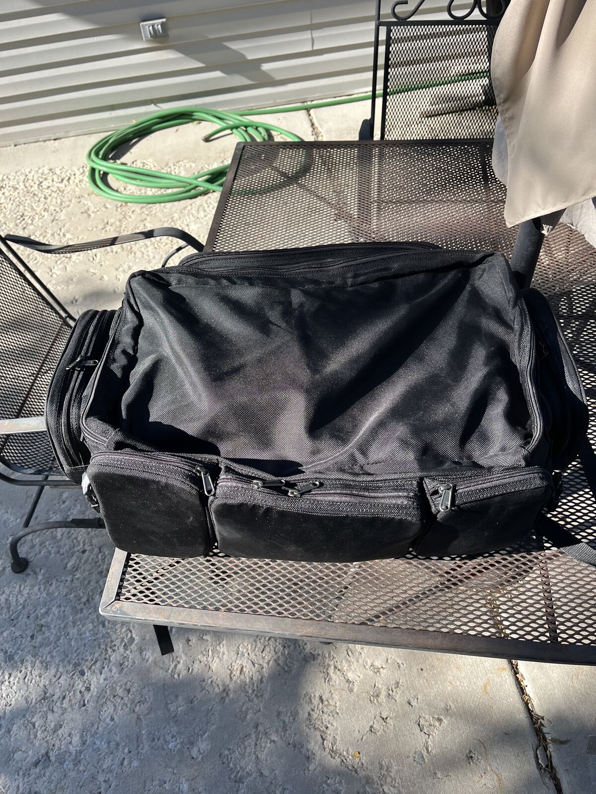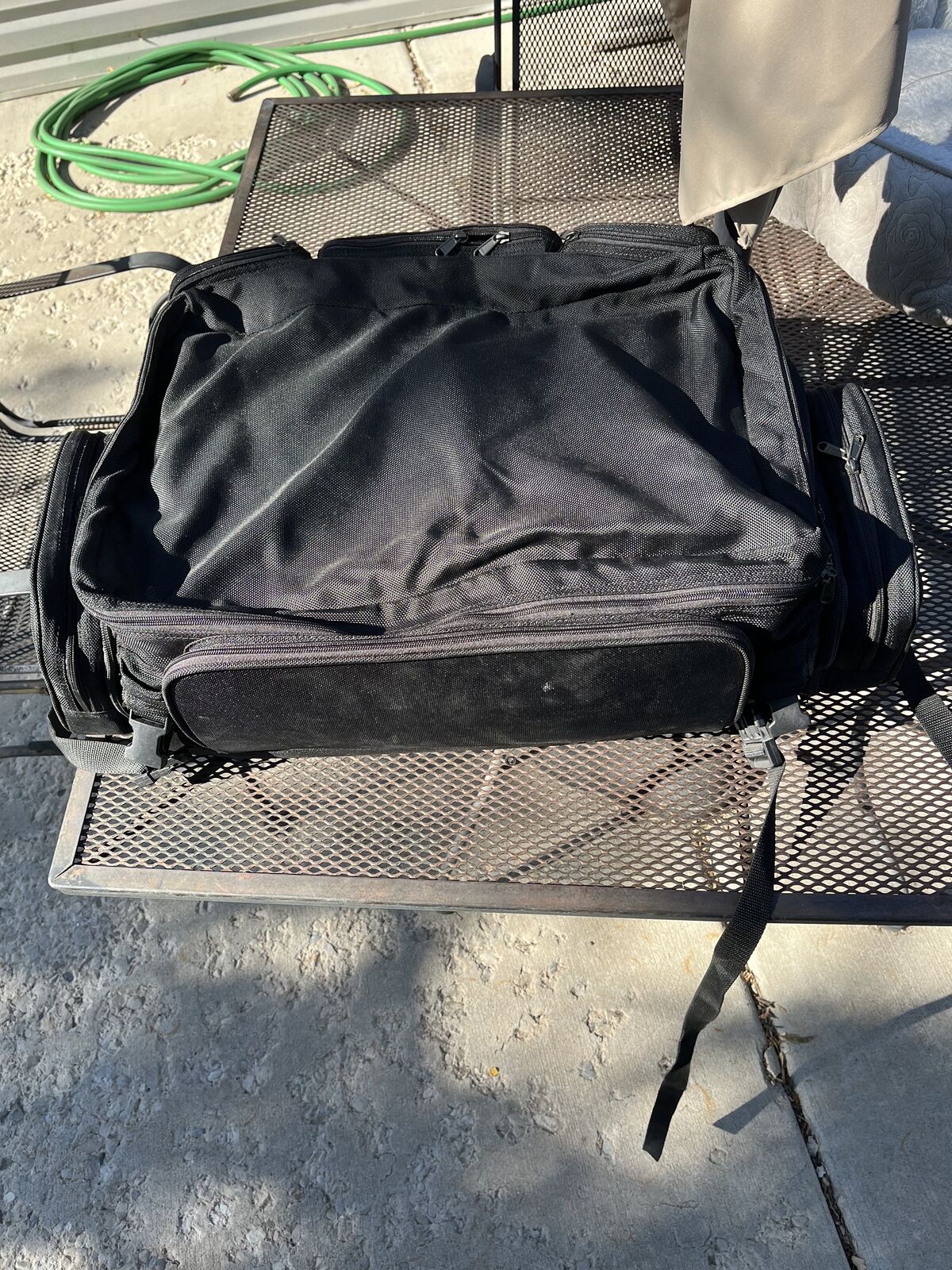 VenmoT-Bag with large compartment and 6 pockets. Size: 22L x 15W x 9H. Used on our HD touring bike. Is in great condition. Asking $80 or make an offer.
