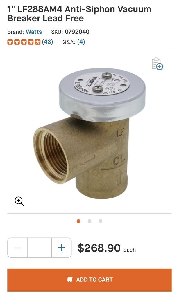 New Watts LF288AM4 1 anti-siphon vacuum breaker. I have 2 available, both in new condition. Average retail price is $268.90 I’m asking $70.00 each for a quick sale. Text preferred or leave a voicemail and I’ll get back to you.