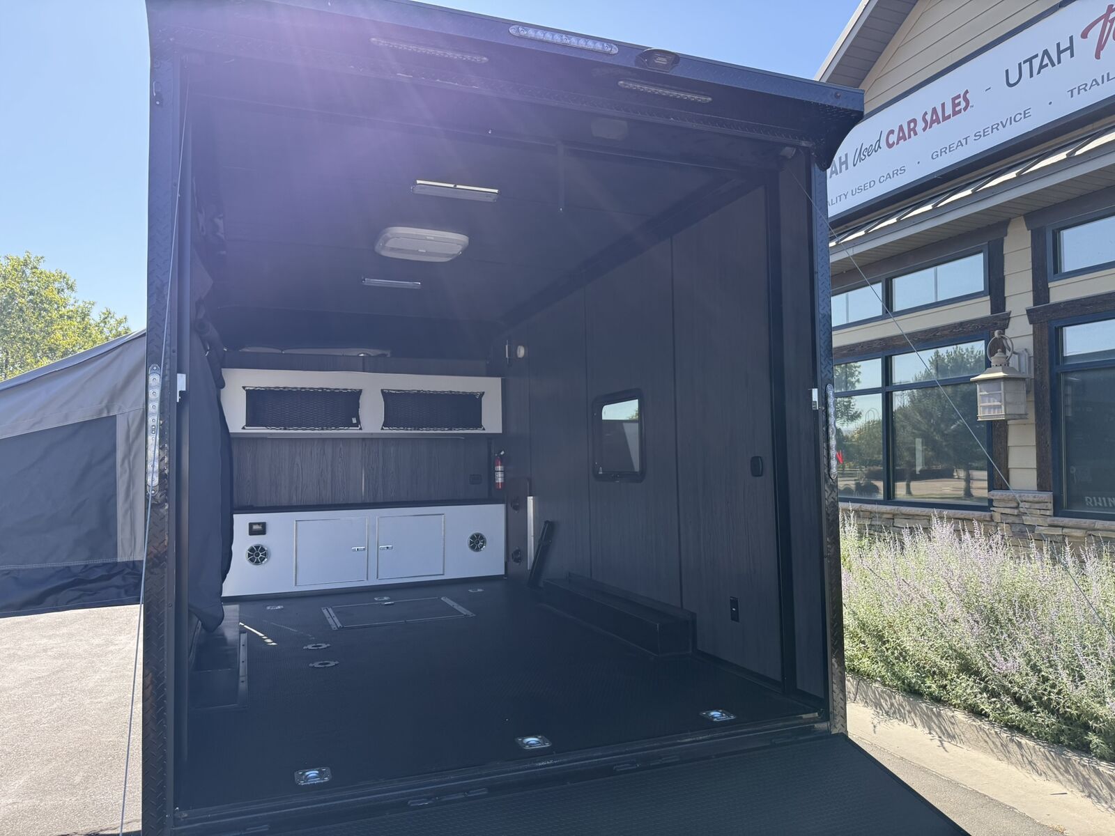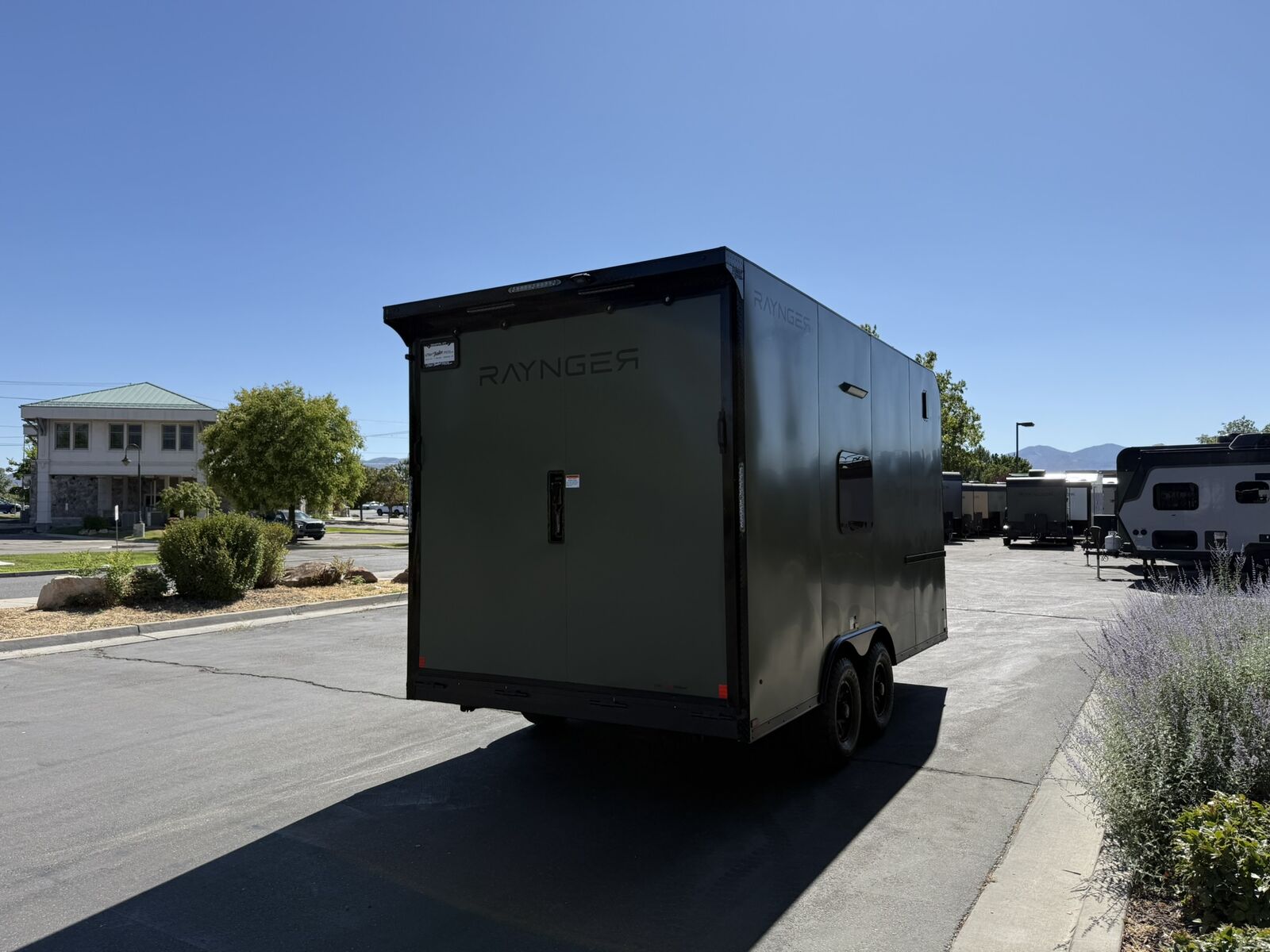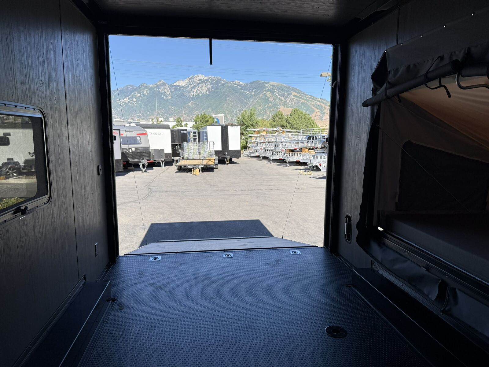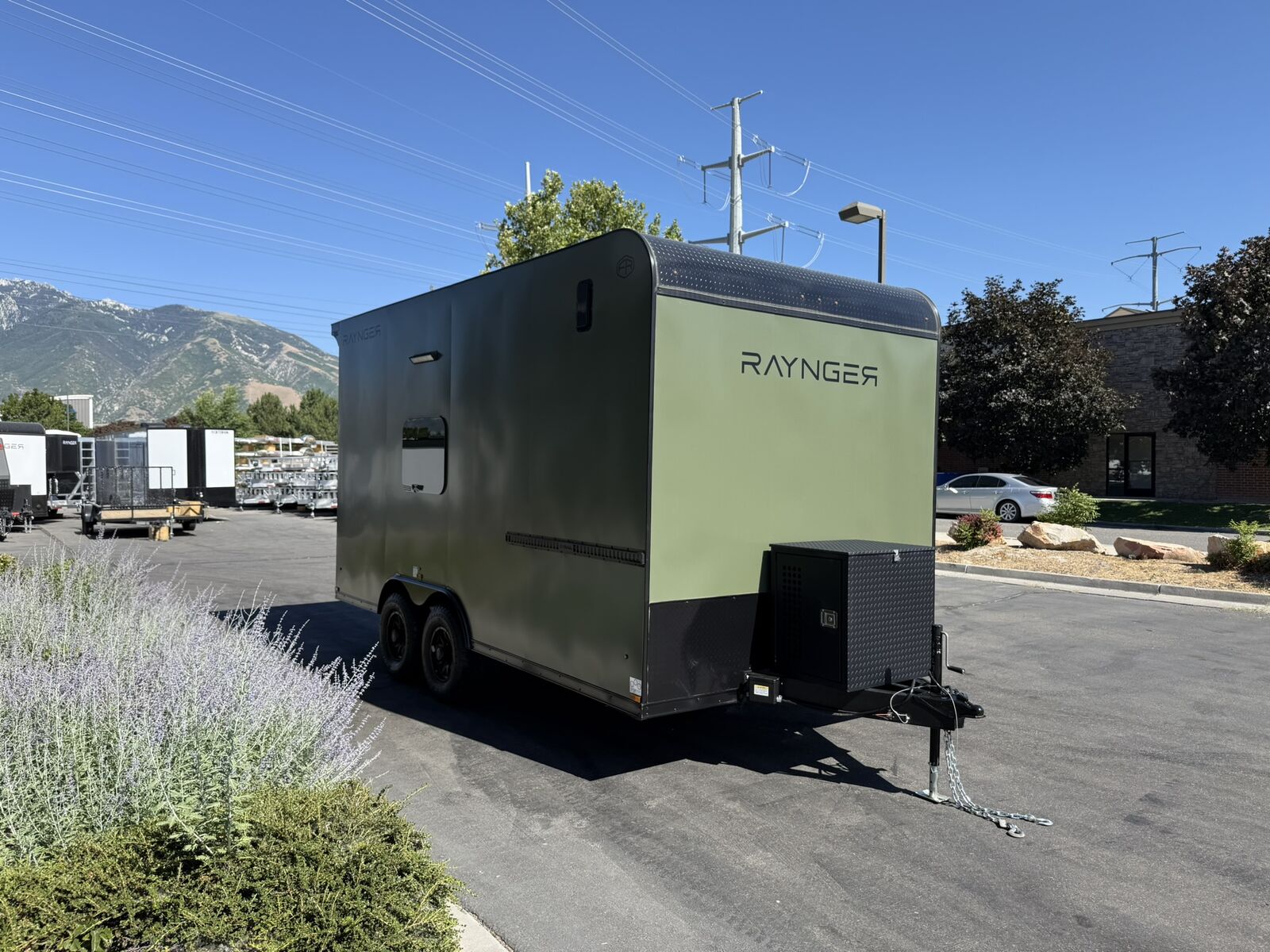 LIMITED TIME $259 A MONTH WITH ZERO DOWN WITH OUR SPECIAL LOCAL CREDIT UNION PARTNER!!! NO PRE-PAYMENT PENALTIES!!! NEW 8.5 WIDE MODEL!!! WILL FIT ANY STOCK SIDE BY SIDE UTV!!! RAYNGER PREMIUM OFF ROAD TOY HAULER CAMPER!!! 18 INCH GROUND CLEARANCE!!! OFF ROAD TIRES!!! FULLY INSULATED!!! HEATING AND A/C!!! WET SOUND STEREO!!! FOLD OUT/POP OUT TENT WITH MATTRESS!!! 87 Inch Rear Entry Height/90 INCH INTERIOR HEIGHT!!! 90 Inch Rear Entry Width!!! Ventilated Locking Generator Box!!! UPGRADED 5,200# TORSION AXLES!!! 14.2 Foot Long Garage Space!!! And Much MUCH MORE!!! Check out our Specs!!! Also available in 18 foot models. 18 Foot Models can have 3 Fold Out Beds/Pop Out Tents. 16 Foot and 18 Foot Models will fit ANY stock 4 Seater Side by Side • 6” I Beam Frame• Flat Top Design• Flat Front Design• Wall Posts 16” on Center• Cross Members 16” on Center• Roof Bows 16” on Center• Rust Inhibiting Z-Tech Protection on Chassis• Ameraguard on Tongue• Ameraguard on Rear Bumper• Ameraguard Around All Door Openings and Stepwell• Ameraguard Around Edges of Ramp Door• 3500 LB Spring Axles• 2-5/16” Coupler• One-Piece Aluminum Roof• ST235/75R15 Aluminum Wheels with Chrome Center Caps• 2000# Ramp Door with Eberhard Latch• 30” Tempered Glass RV Door with Screen Door• .030 Exterior Metal with Screwless Sides• 24” Black Stoneguard• 3” Black Bottom Trim• Sand Pad• Black Door Hold• 2.7mm Charcoal Textured Vinyl Ceiling • 9mm Charcoal Textured Vinyl Walls• 3/4” Engineered Wood Floor with Rubber Coin Overlay• (6) 1200 LB Floor D rings Installed with Backer Plates• LED Clearance Lights and Tail Lights• LED Back-up Lights• No Show Wheel Box• Spoiler with Toggle Switch• RV Step• 7’ Interior• (2) 17” Chrome Base Lights with Switch• (1) Black 17” Spot Light with Switch• (1) 30 Amp Panel with Marine Plug• A/C Unit with Heat Strip• (3) Interior Recepts• (1) Exterior Recept• 12V Battery and Charge Line• Prep for Backup Camera• Wet Sounds System• (3) Blue Interior Cabinet Lights• (1) 6’ Section of Flex Lights• Black ATP Rear Header and Hoop• Black ATP Fenders• Insulated Walls & Ceiling• Base Cabinets• Overhead Cabinets with Netting Over Compartments• Pop Out Tent• Black ATP Storage/Generator Box Mounted On Tongue Stock