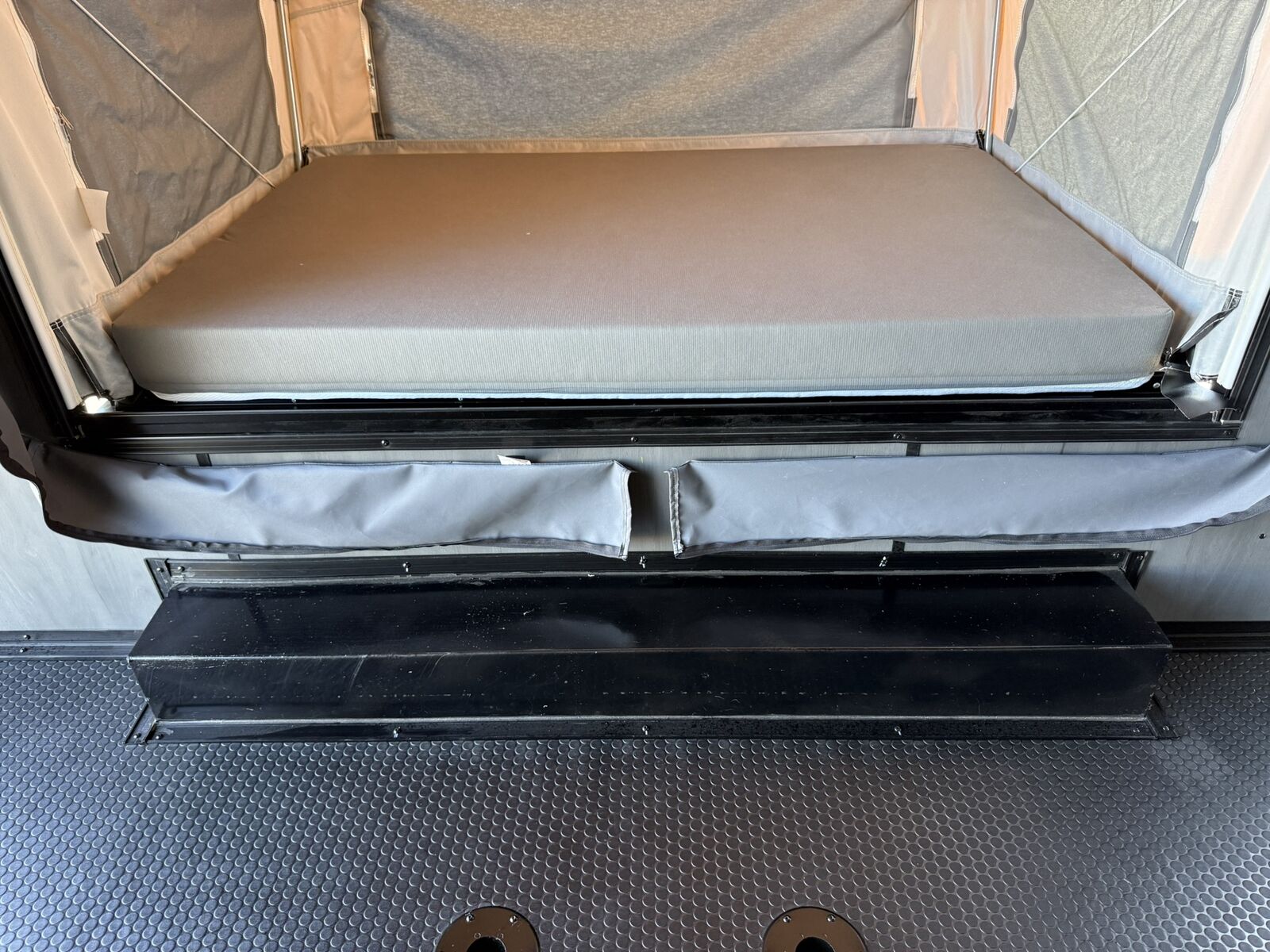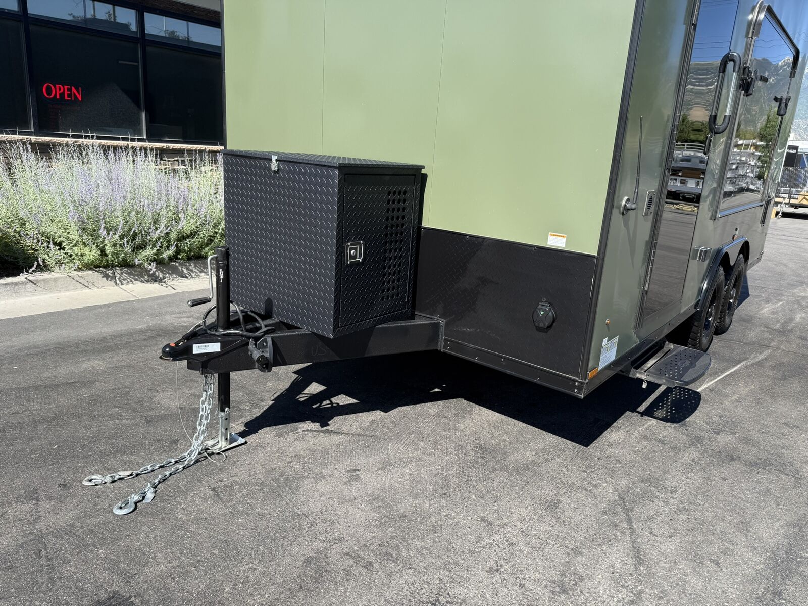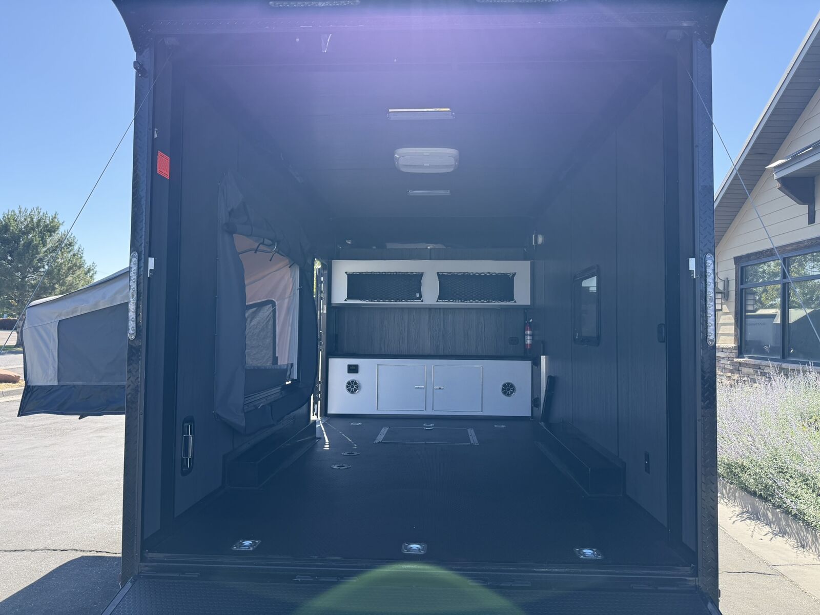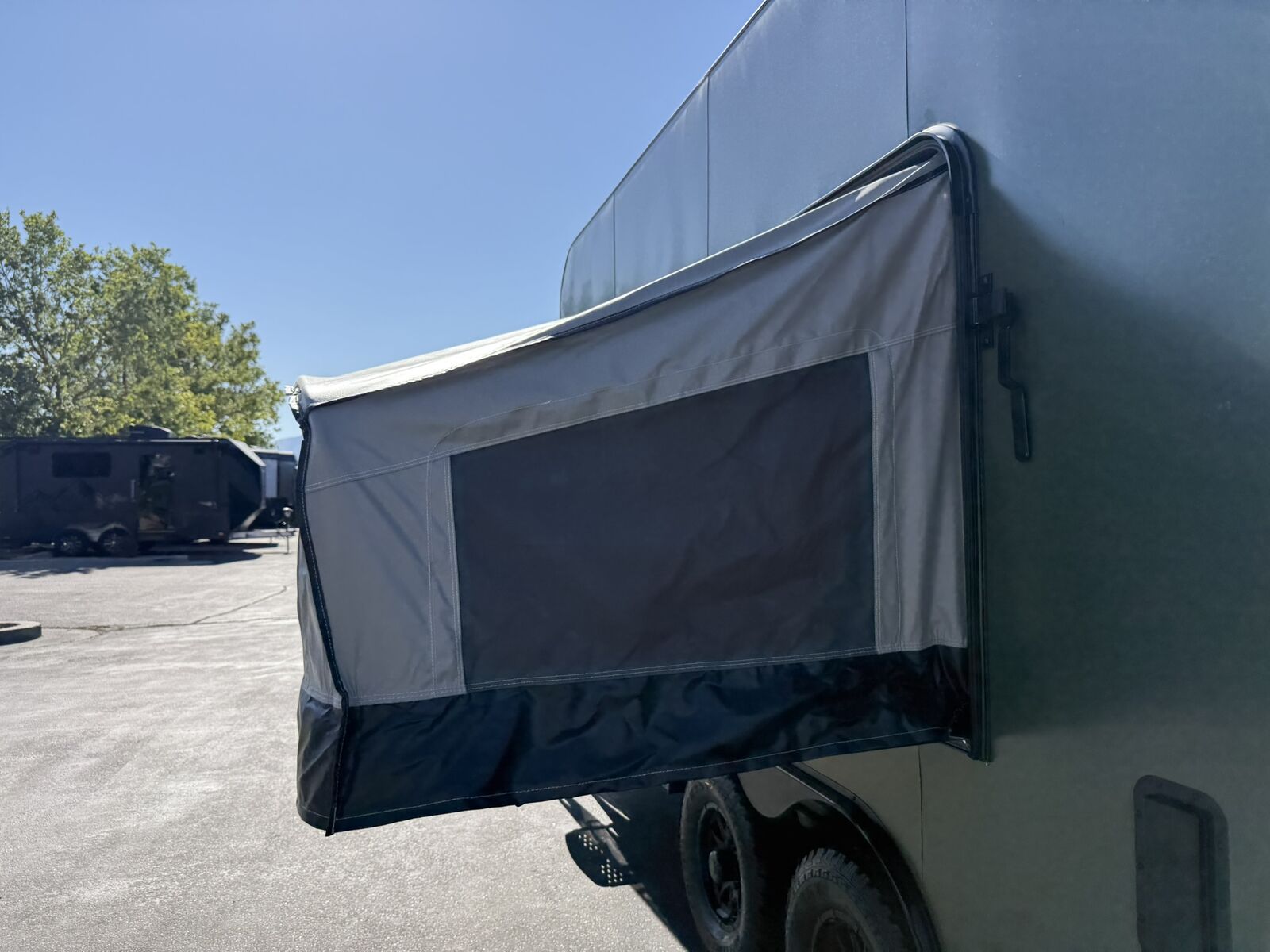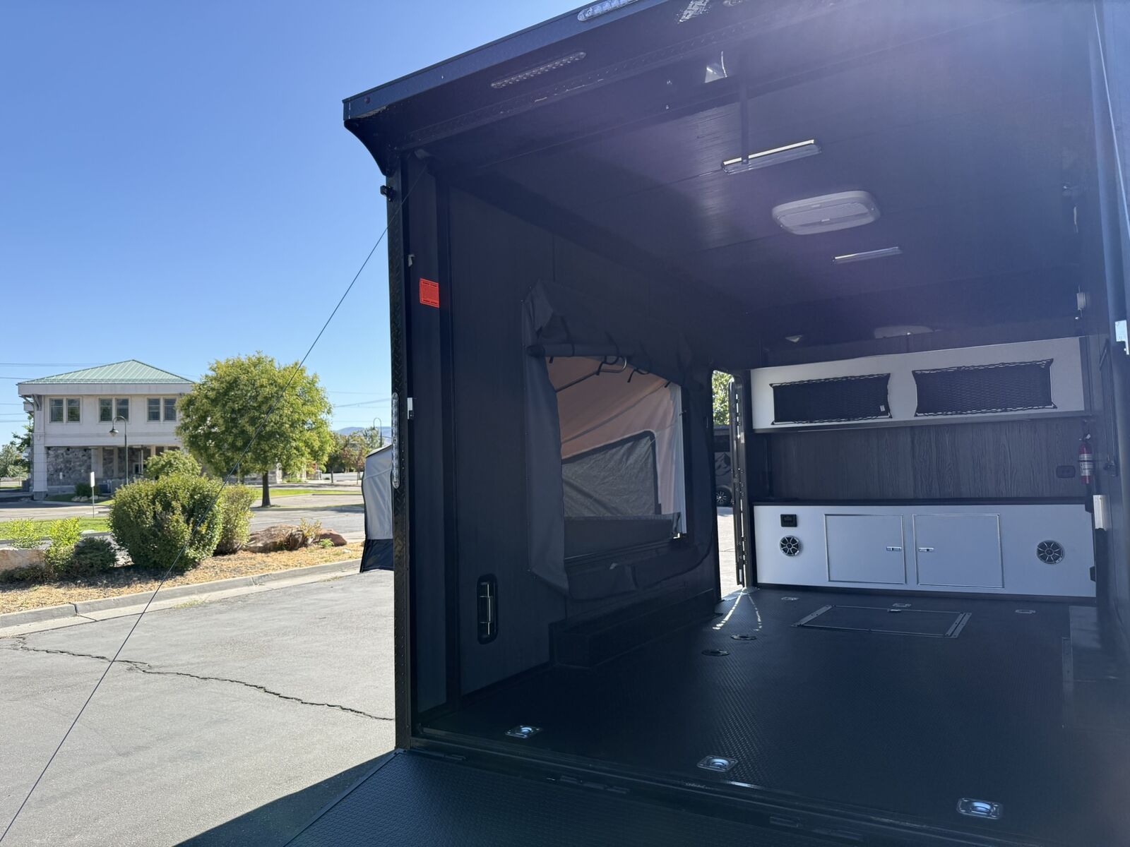 LIMITED TIME $259 A MONTH WITH ZERO DOWN WITH OUR SPECIAL LOCAL CREDIT UNION PARTNER!!! NO PRE-PAYMENT PENALTIES!!! NEW 8.5 WIDE MODEL!!! WILL FIT ANY STOCK SIDE BY SIDE UTV!!! RAYNGER PREMIUM OFF ROAD TOY HAULER CAMPER!!! 18 INCH GROUND CLEARANCE!!! OFF ROAD TIRES!!! FULLY INSULATED!!! HEATING AND A/C!!! WET SOUND STEREO!!! FOLD OUT/POP OUT TENT WITH MATTRESS!!! 87 Inch Rear Entry Height/90 INCH INTERIOR HEIGHT!!! 90 Inch Rear Entry Width!!! Ventilated Locking Generator Box!!! UPGRADED 5,200# TORSION AXLES!!! 14.2 Foot Long Garage Space!!! And Much MUCH MORE!!! Check out our Specs!!! Also available in 18 foot models. 18 Foot Models can have 3 Fold Out Beds/Pop Out Tents. 16 Foot and 18 Foot Models will fit ANY stock 4 Seater Side by Side • 6” I Beam Frame• Flat Top Design• Flat Front Design• Wall Posts 16” on Center• Cross Members 16” on Center• Roof Bows 16” on Center• Rust Inhibiting Z-Tech Protection on Chassis• Ameraguard on Tongue• Ameraguard on Rear Bumper• Ameraguard Around All Door Openings and Stepwell• Ameraguard Around Edges of Ramp Door• 3500 LB Spring Axles• 2-5/16” Coupler• One-Piece Aluminum Roof• ST235/75R15 Aluminum Wheels with Chrome Center Caps• 2000# Ramp Door with Eberhard Latch• 30” Tempered Glass RV Door with Screen Door• .030 Exterior Metal with Screwless Sides• 24” Black Stoneguard• 3” Black Bottom Trim• Sand Pad• Black Door Hold• 2.7mm Charcoal Textured Vinyl Ceiling • 9mm Charcoal Textured Vinyl Walls• 3/4” Engineered Wood Floor with Rubber Coin Overlay• (6) 1200 LB Floor D rings Installed with Backer Plates• LED Clearance Lights and Tail Lights• LED Back-up Lights• No Show Wheel Box• Spoiler with Toggle Switch• RV Step• 7’ Interior• (2) 17” Chrome Base Lights with Switch• (1) Black 17” Spot Light with Switch• (1) 30 Amp Panel with Marine Plug• A/C Unit with Heat Strip• (3) Interior Recepts• (1) Exterior Recept• 12V Battery and Charge Line• Prep for Backup Camera• Wet Sounds System• (3) Blue Interior Cabinet Lights• (1) 6’ Section of Flex Lights• Black ATP Rear Header and Hoop• Black ATP Fenders• Insulated Walls & Ceiling• Base Cabinets• Overhead Cabinets with Netting Over Compartments• Pop Out Tent• Black ATP Storage/Generator Box Mounted On Tongue Stock
