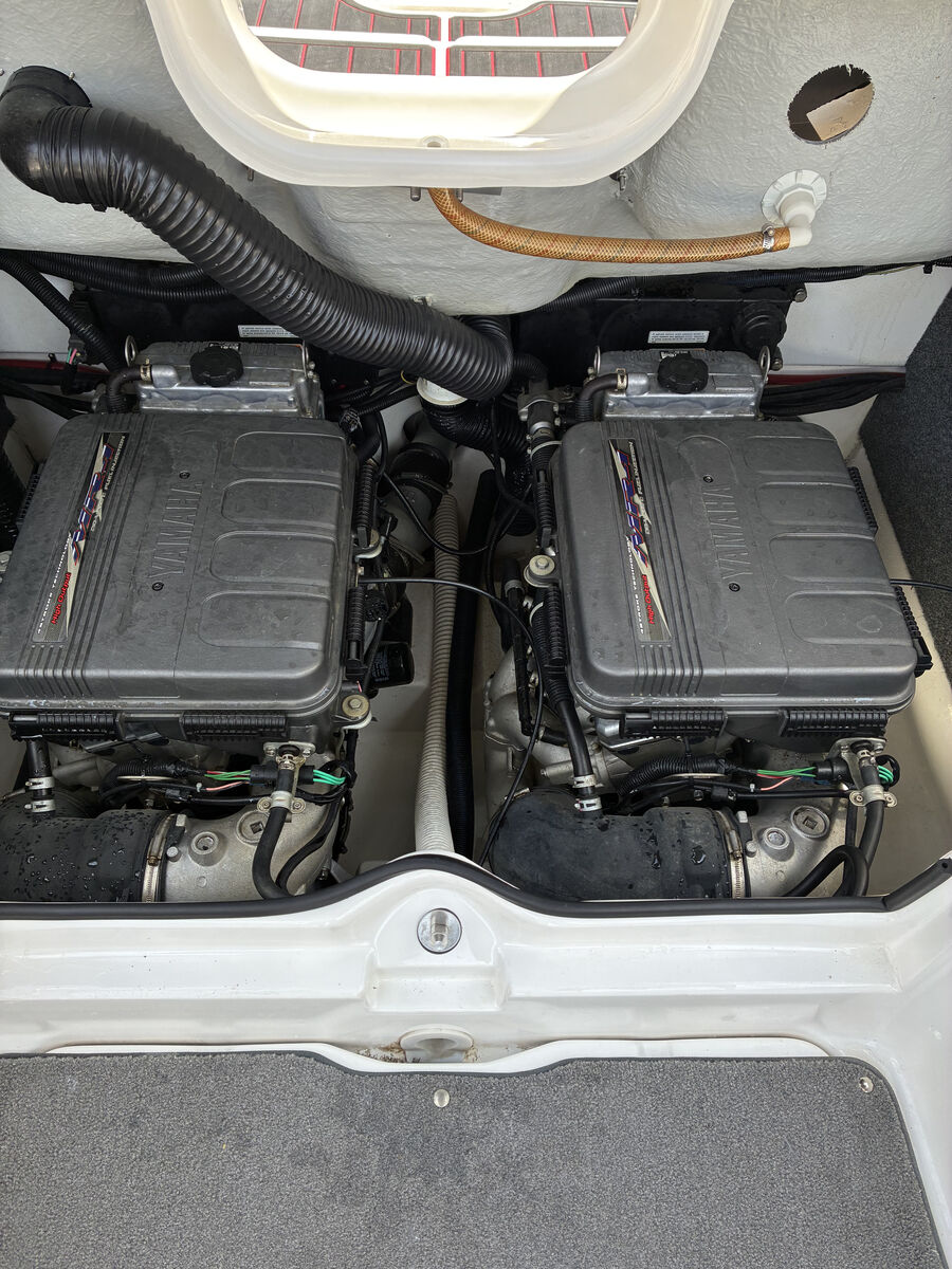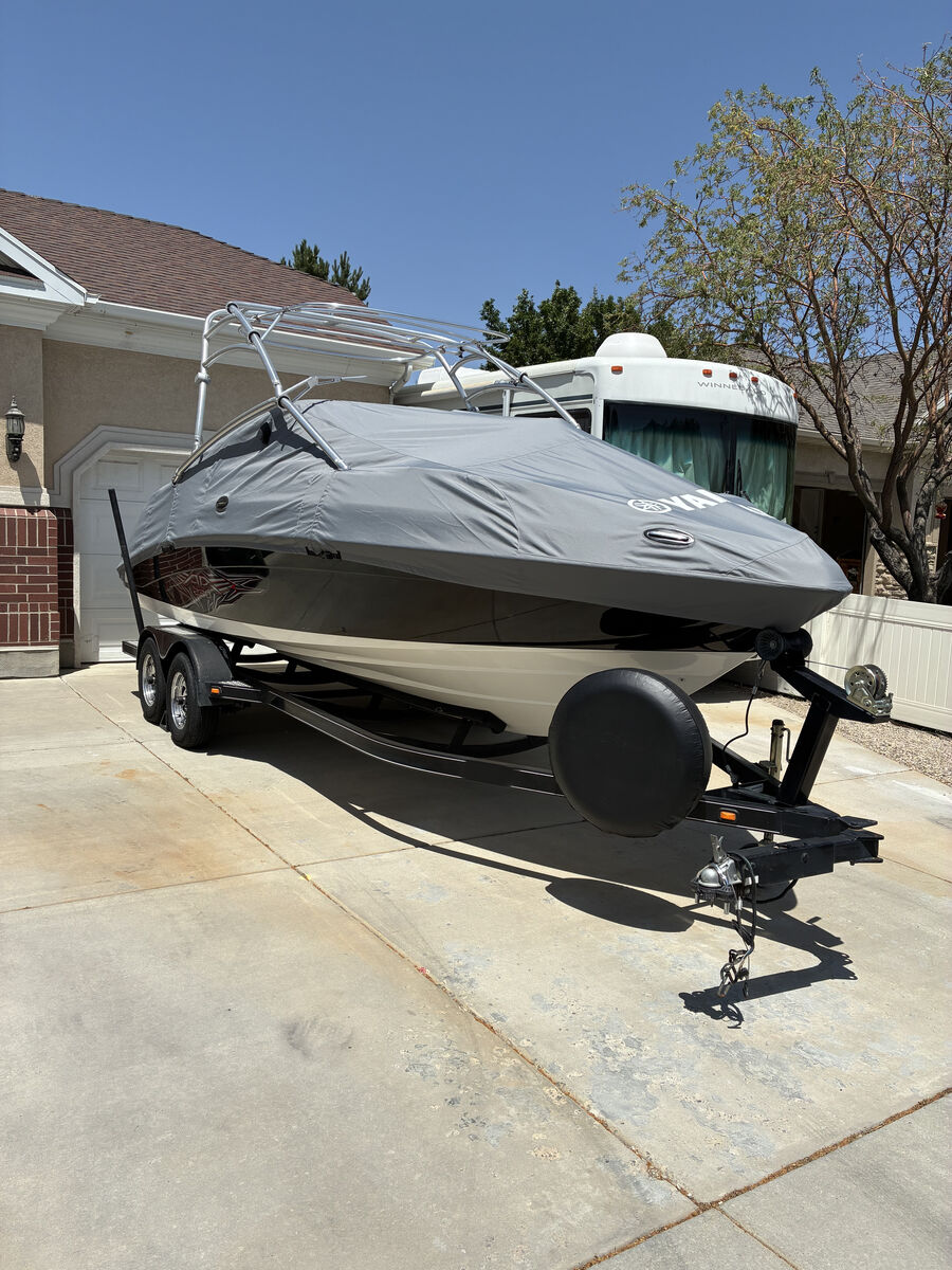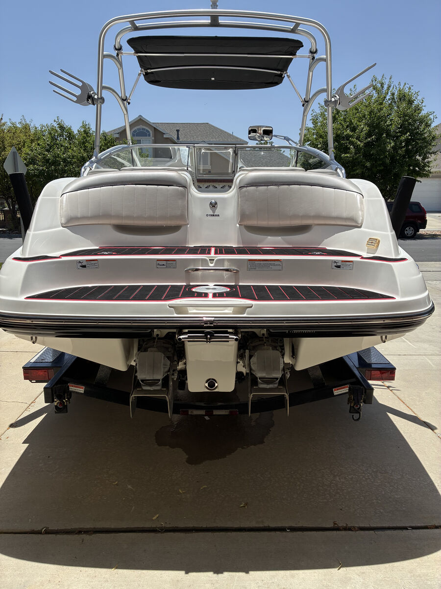 23 foot jet boat, Twin four cylinder HO engines, Folding tongue trailer with good tires. Tower mounted bimini top and mirror and wake and surfboard racks. New swim platform hydromats, snap in carpets. 2 fenders and dock lines. new cover with support poles. Sony bluetooth sterio and speakers. 2 person tube with tow ropes. Everything works I have never had any problems in the 2 years that Ive owned it. Engines run great. I have done all regular maintenence. There are a few spots on the interior that the seams are opening up and the decals on the exterior have some wear. I hate to see it go but we just dont use it enough. No trades. Serious inquiries only please.