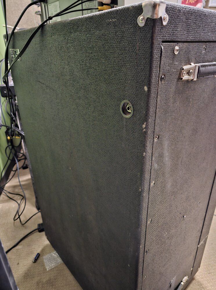 This cab is an absolute monster, with a 70's speaker (unsure if it's original or a replacement) along with a Celestion Fullback speaker together bringing out thunderous yet crisp tone. It's in pretty good shape for being a fifty year old cabinet! I'm staying firm on the price but I won't mind reasonable offers on this beast. I take only cash or venmo. Thanks for looking!