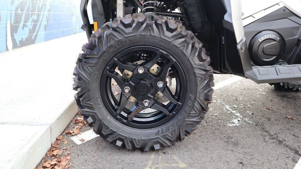 7" RIDE COMMAND display, 6 gal. rear sealed storage, high-output LED lighting, 3,500 lb. HD winch with synthetic rope and auto-stop, front trail bumper, underseat storage bag, 26" DURO tires on 14" aluminum wheels, front & rear rack extenders, CV guards, and multi-select EPS with arched dual A-arm suspension (8.9"/9.5" travel).