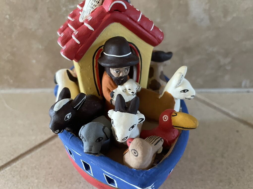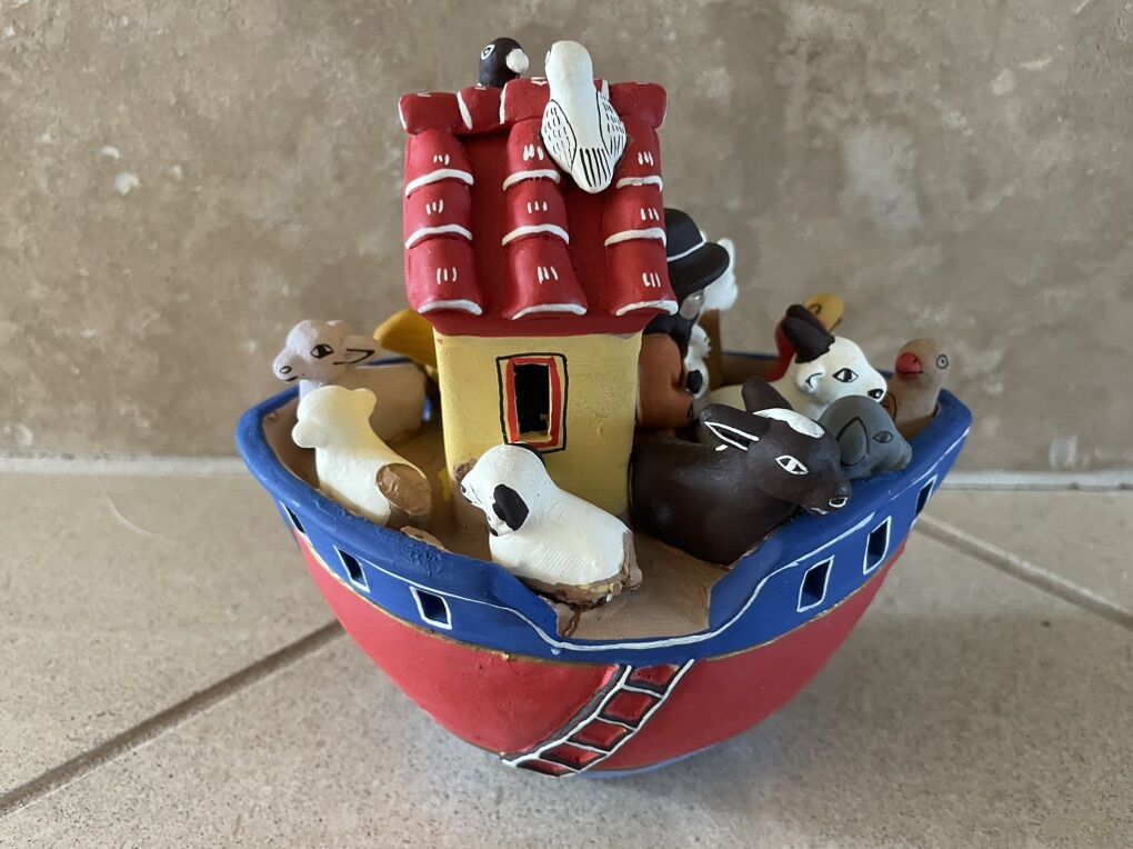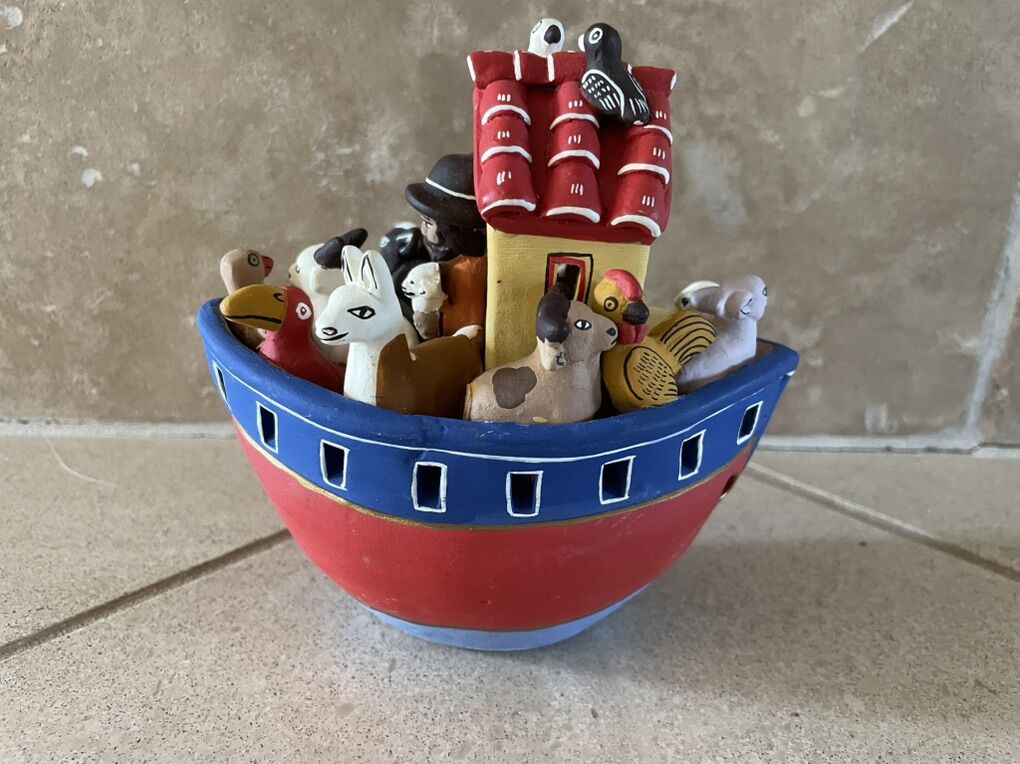 I have a clay Noah’s Ark handmade in Peru. It is 5 1/2 inches tall and 5 1/2 inches long. See my other ads for jewelry, artwork, home decor and more.