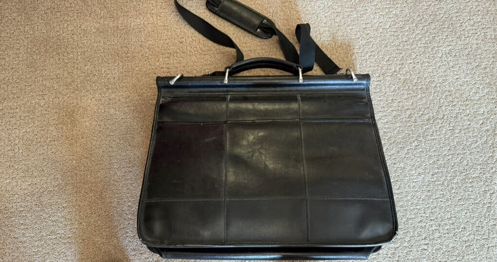 VenmoVery clean, black leather briefcase or laptop case measuring 15”x17”. Located in Sandy.