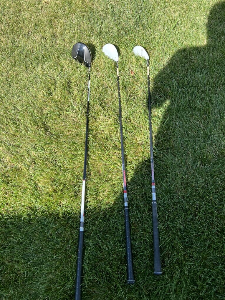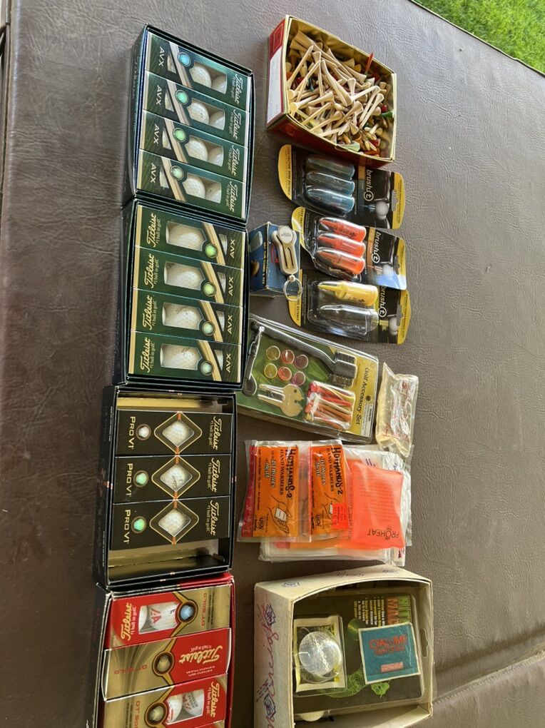 VenmoTaylor Made driver,3wood,5wood. Senior graphite shafts King Cobra irons,3 to 9,PW,SW same shafts ,2 hybrids 12 sleeves titlest golf balls 3 sleeved Titlest PROV1 Box tees,9 brush tees ,Foot Joy shoes size 9 1/2 Taylor Made putter Hand warmers Misc other stuff Golf bag Rain gear pants 38. Jacket 49 Umbrella Foot Joy golf glove. New