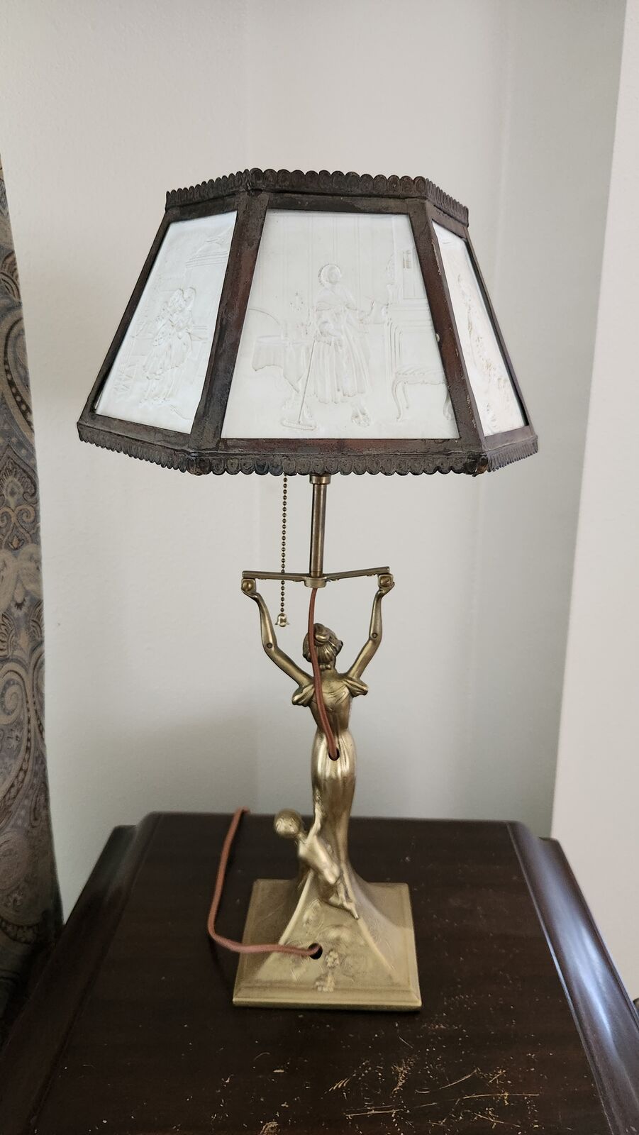 This lamp is not only a functional lighting piece but also a rare work of art that captures the charm of another era. A must-have for serious collectors or those who love unique antique décor.