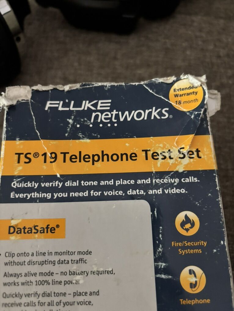 Amazing deal on this brand new fluke ts-19 phone test set. Brand new in hammered box! As you can see from the photos the item is new, the box is just beat up! This exact item is currently 145.00 on Amazon now! Don’t pay retail prices, call Dustin now instead at 801-205-3404, I need it gone!