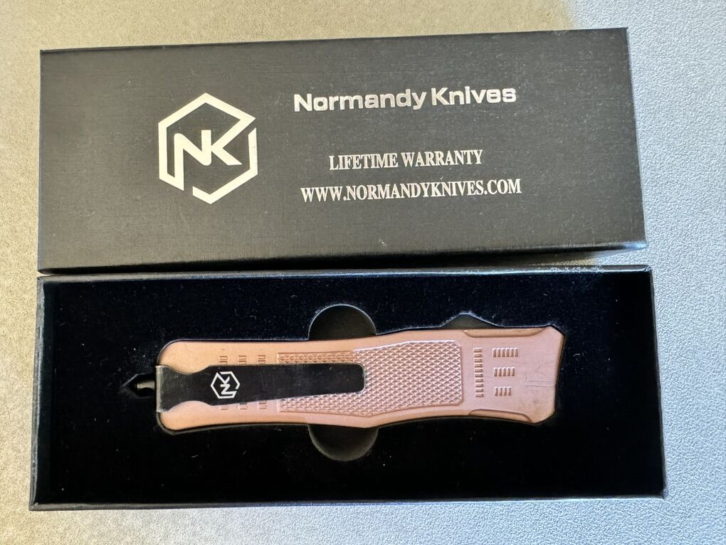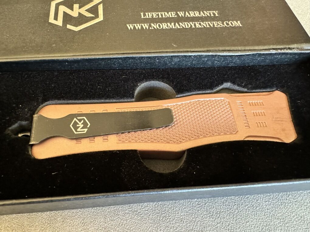 VenmoGood condition Normandy 3 knife. Excellent lifetime warranty. These guys are seriously the best. I dropped it off and they shipped it back with a new blade, spring mechanism and box. Knife is awesome and pops in and out like a breeze.