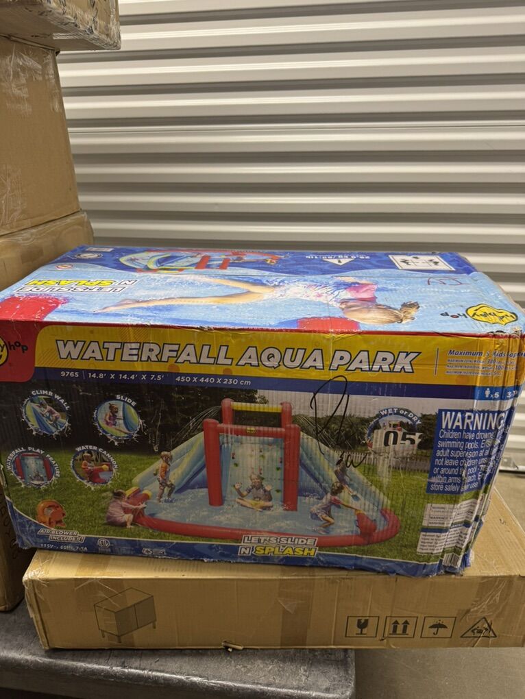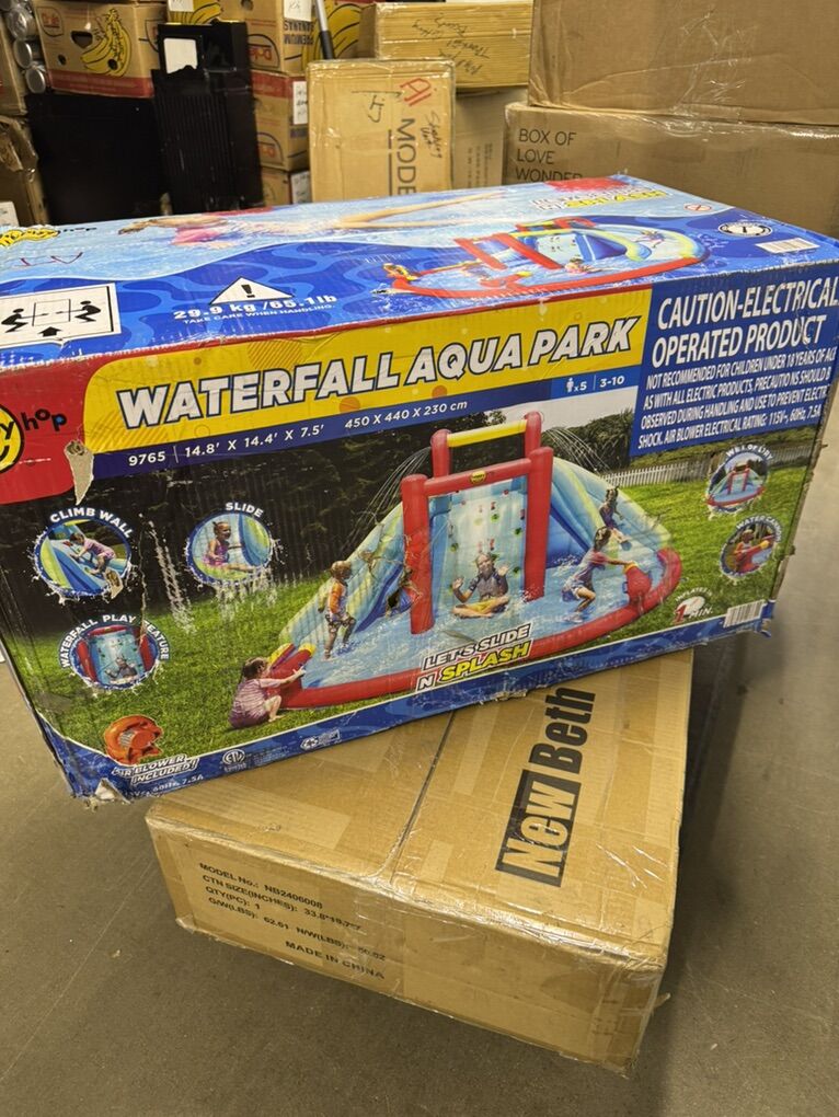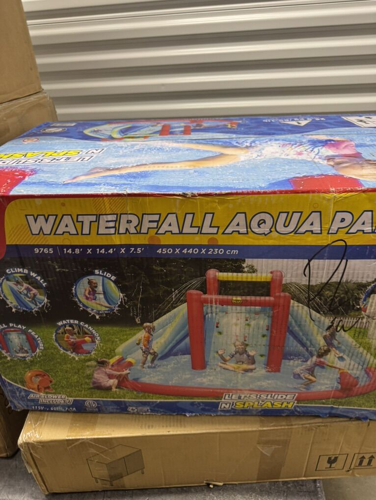 VenmoNEW Inflatable Waterfall Aqua Park with Pool and Slides and Cannons. L 14.8' x W 14.4' x H 7.5'