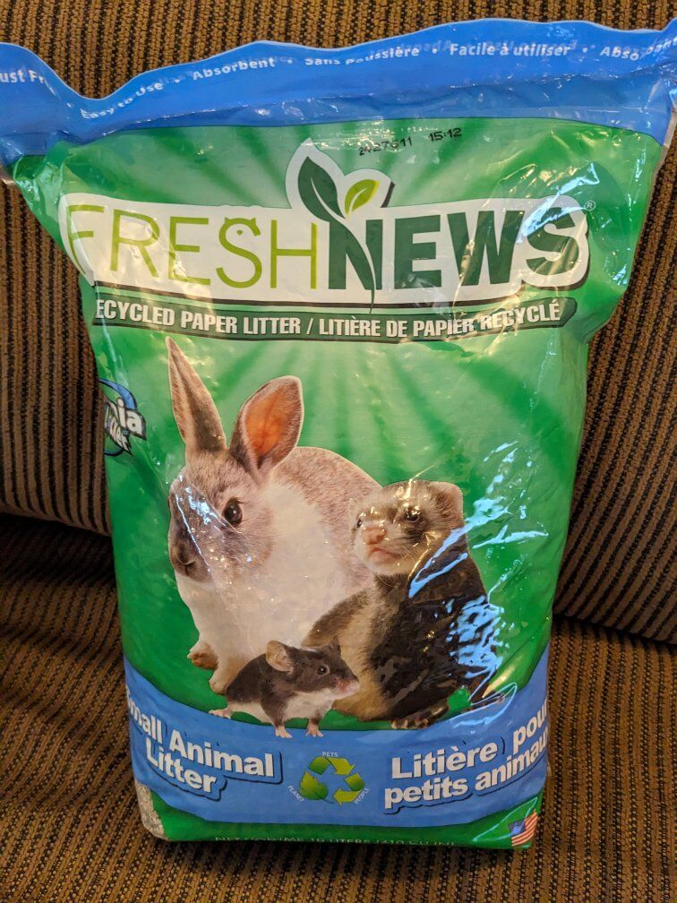 2 unopened bags of: Fresh News Recycled Paper Small Animal Litter Bedding, 10 Liters *This bedding is pellets and much less messy, especially when using for rabbits. We loved it! *Sells on Amazon for $10/bag