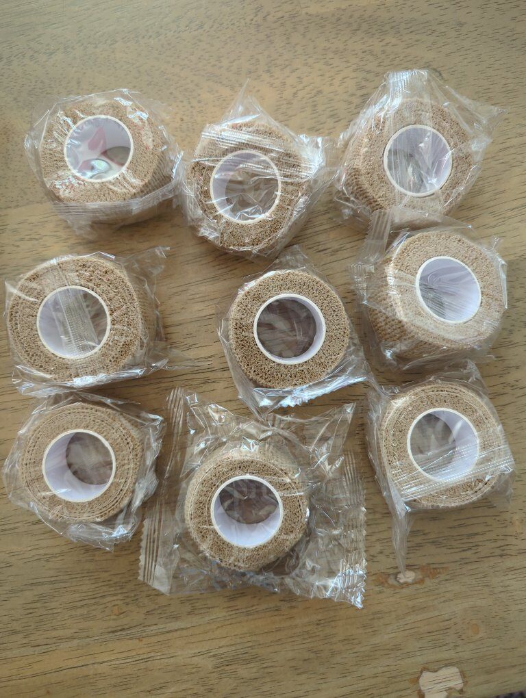 Brand new. Never opened self-adhesive sports wrap No residue and easy tear Skin color 1 in by 5 yd roll Pack of nine