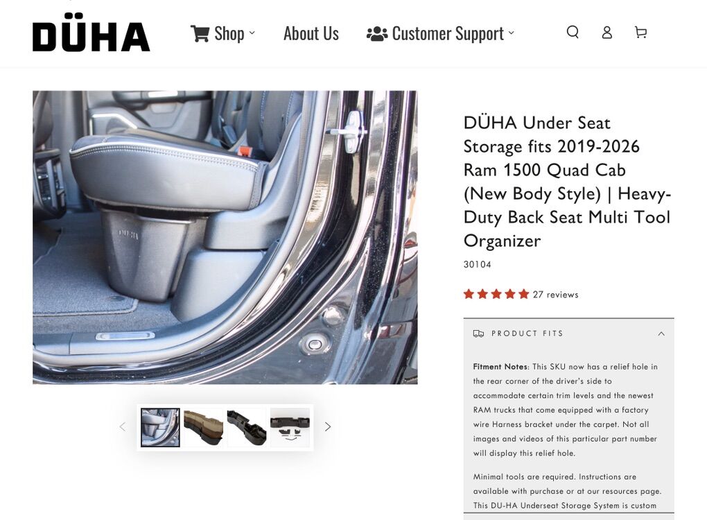 DÜHA Under Seat Storage fits 2019-2026 Ram 1500 Quad Cab (New Body Style) | Heavy-Duty Back Seat Multi Tool Organizer 30104