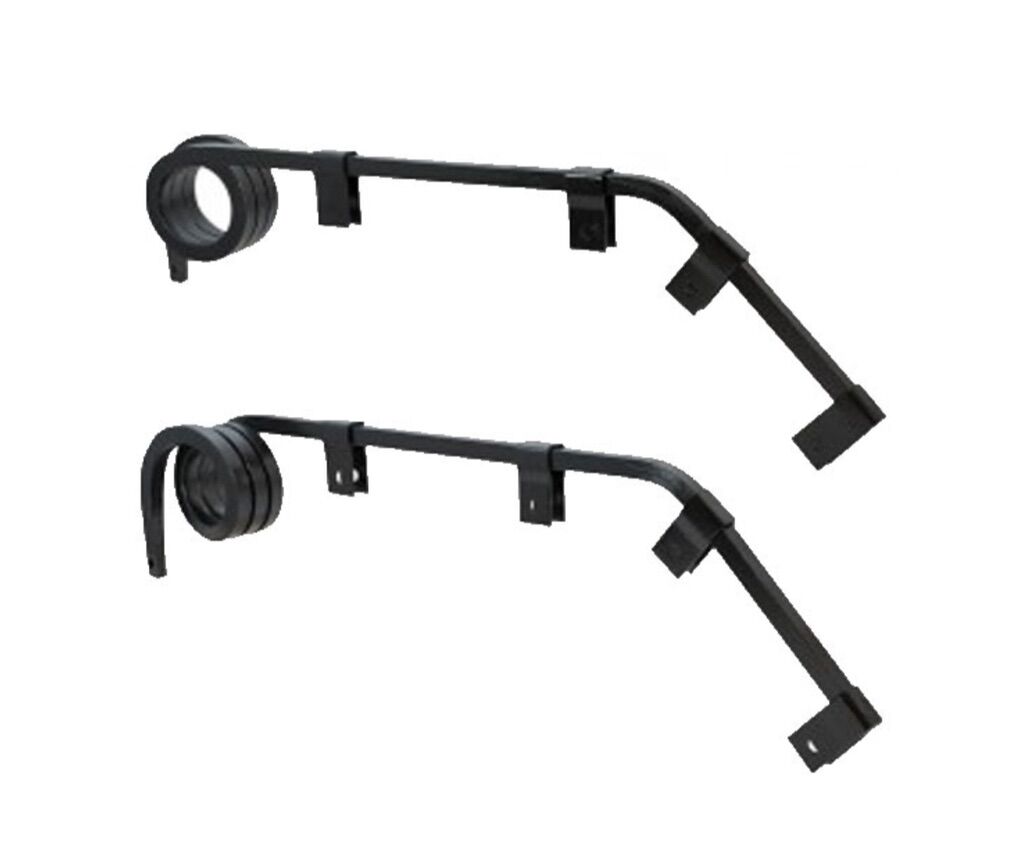 The Right Angle Shortie Bar Triple Coil Individual Mud Flap Hanger is a practical and reliable product designed to provide superior strength and spring back performance. Made from 0.63 inch square spring steel, it maintains a true 90-degree angle in all road conditions. With its RoadKote black E-coat finish, this hanger is not only durable but also aesthetically pleasing. Suitable for both roadside and curbside applications, it fits most makes and models. Sold individually, this mud flap hanger is a must-have for anyone looking for a high-quality and long-lasting solution.