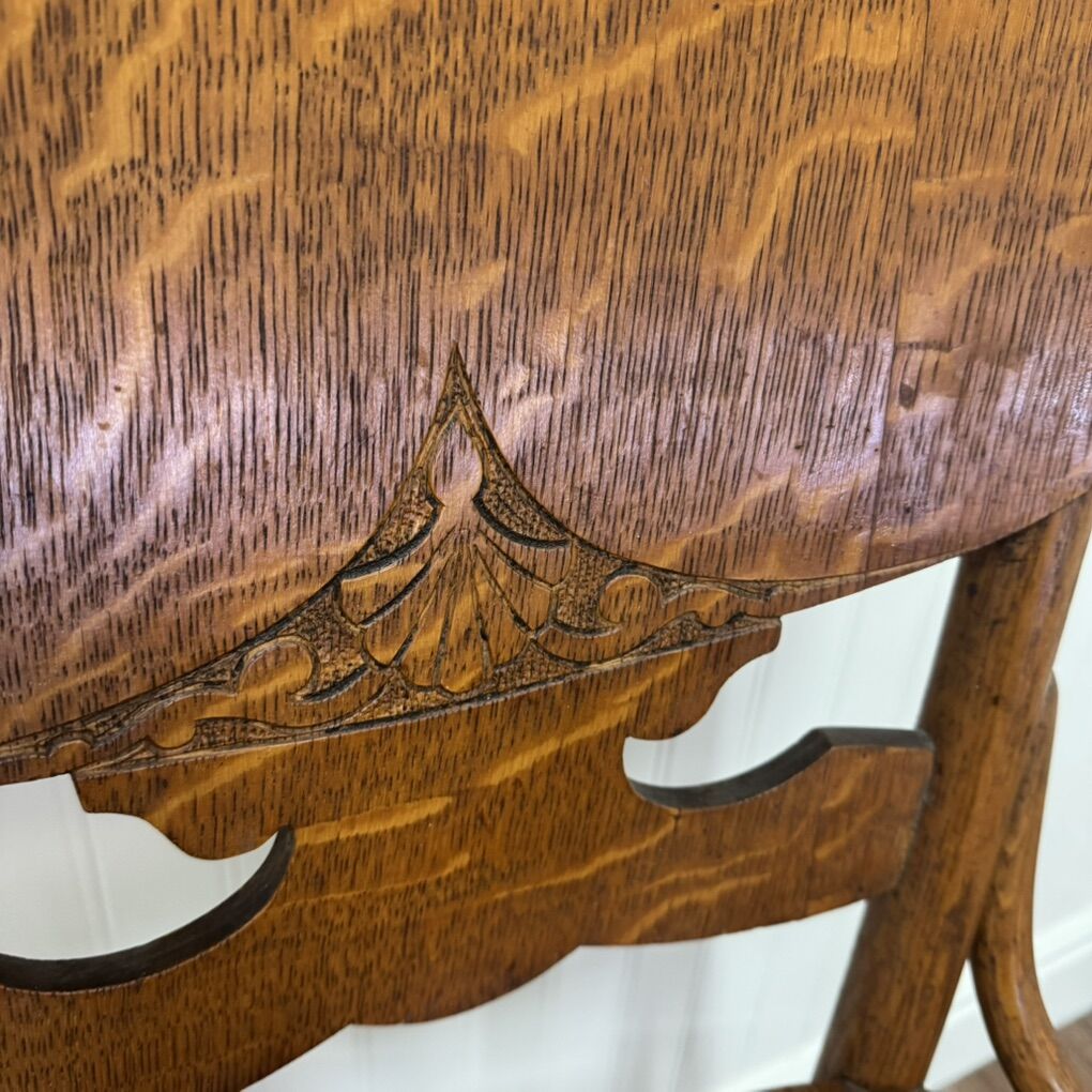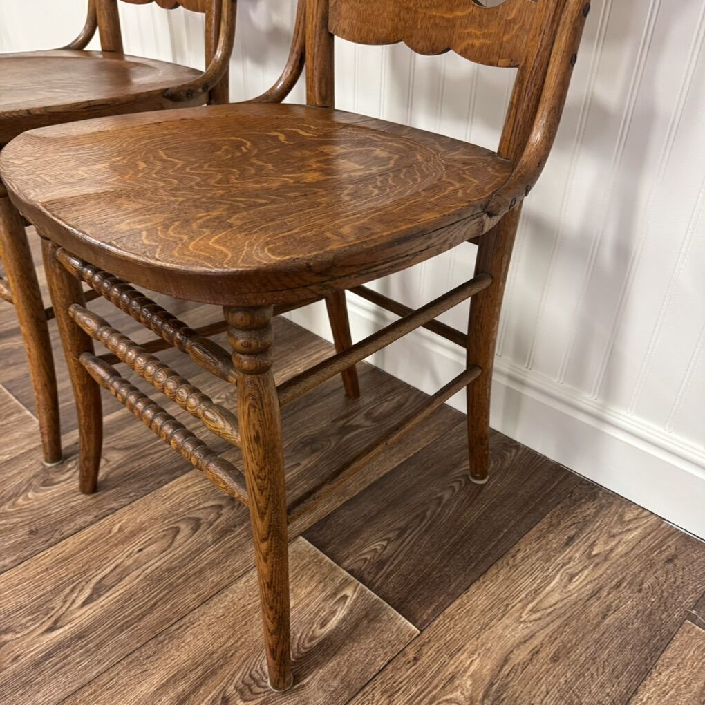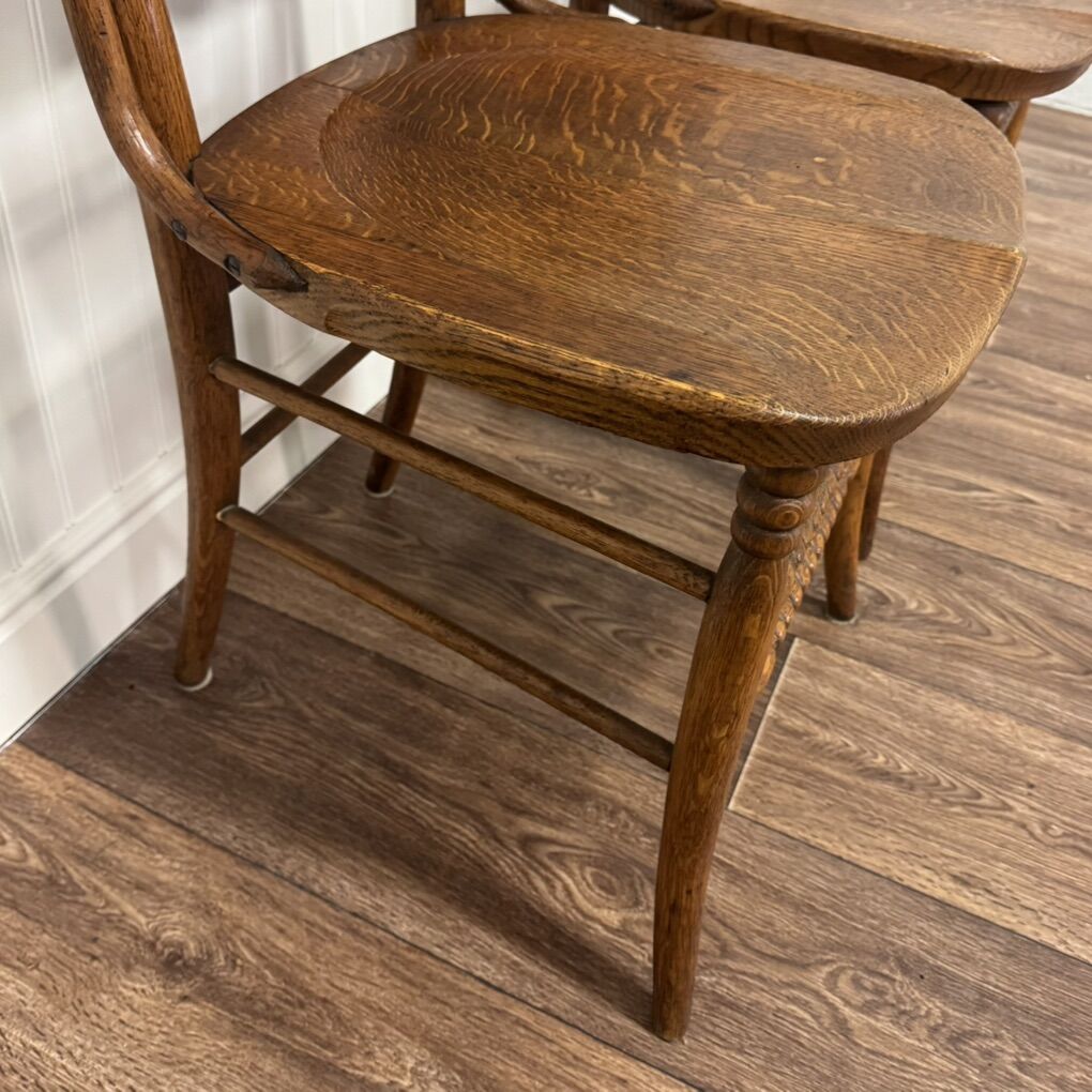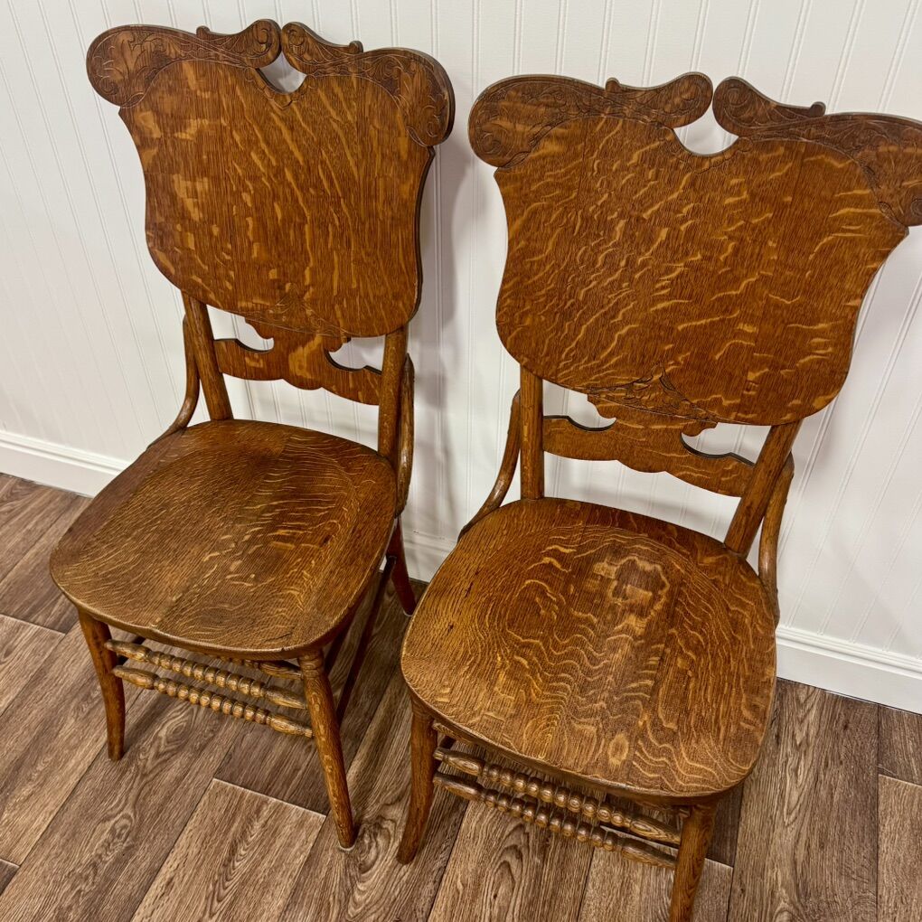 ApplePayPair of Antique Tiger Oak Chairs – Late Victorian / Early 1900s