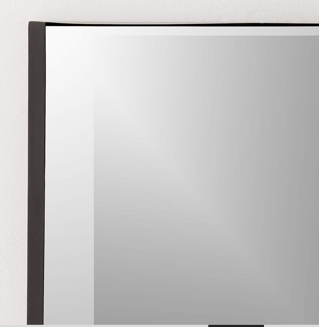 • Handcrafted • Mirror glass • Solid brass frame with matte black finish • Bathroom-safe • French cleat hanging system • Can be hung vertically or horizontally • Mounting hardware included • 23.4 lbs • Dust with a soft, dry cloth; no abrasive cleaners Graduate Beveled Black Rectangular Mirror 24"x36" 36" Height 24" Width 1.25" D