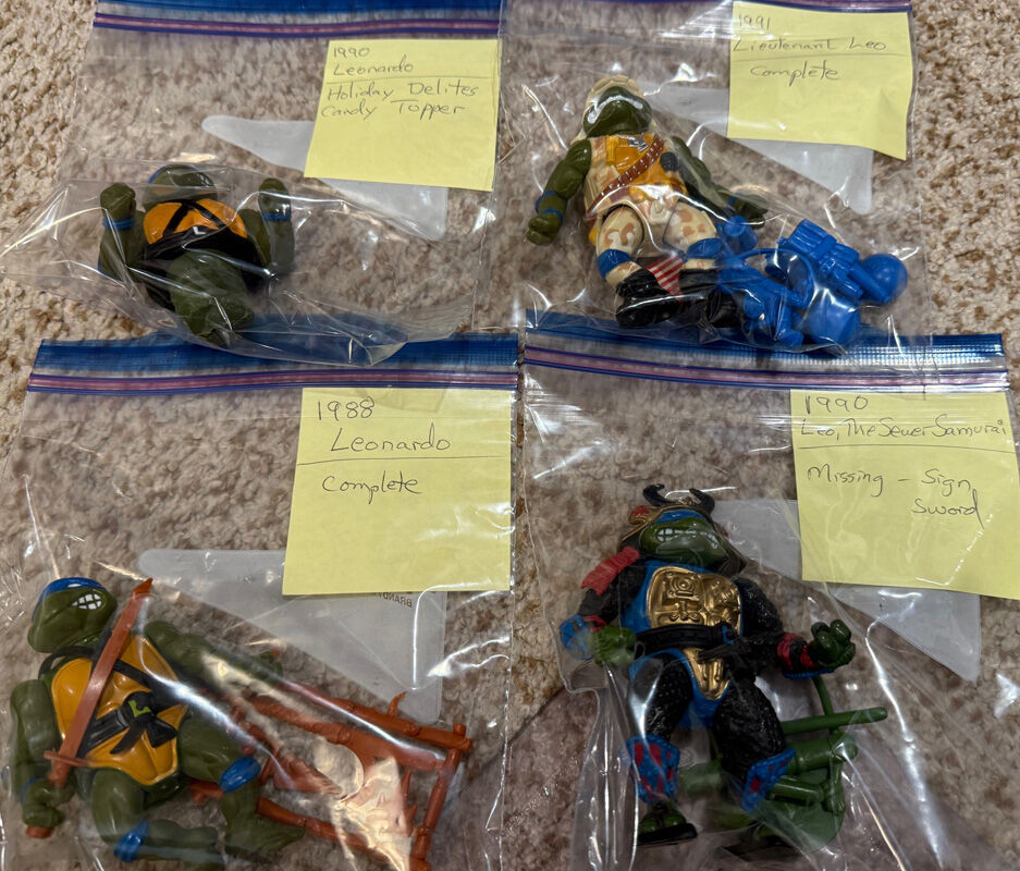 1988 Leonardo [SOLD], 1990 Leo The Sewer Samurai, 1990 Leonardo Holiday Delites Candy Topper, 1991 Lieutenant Leo