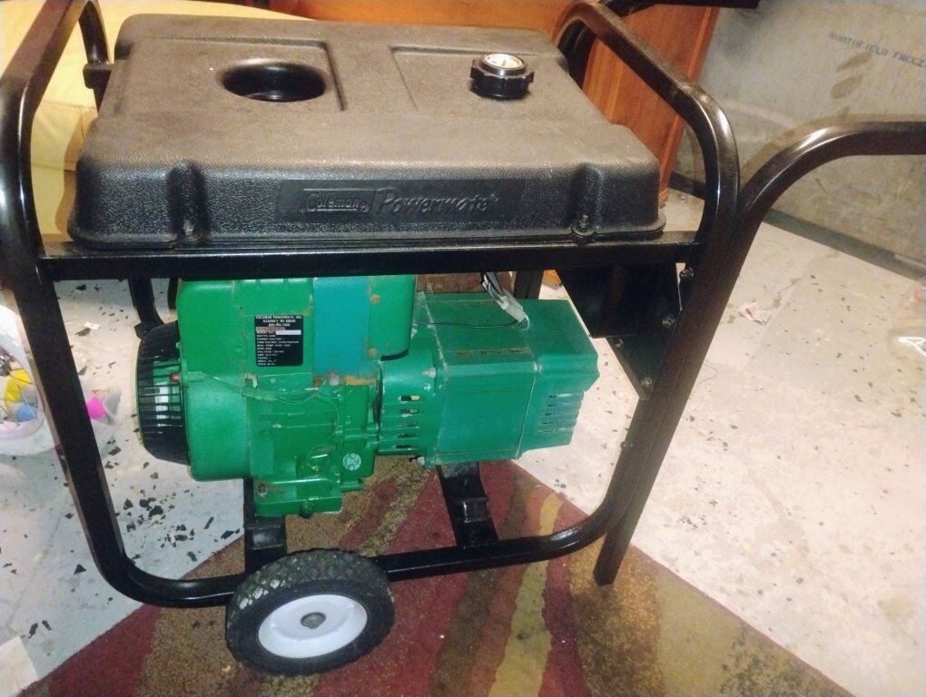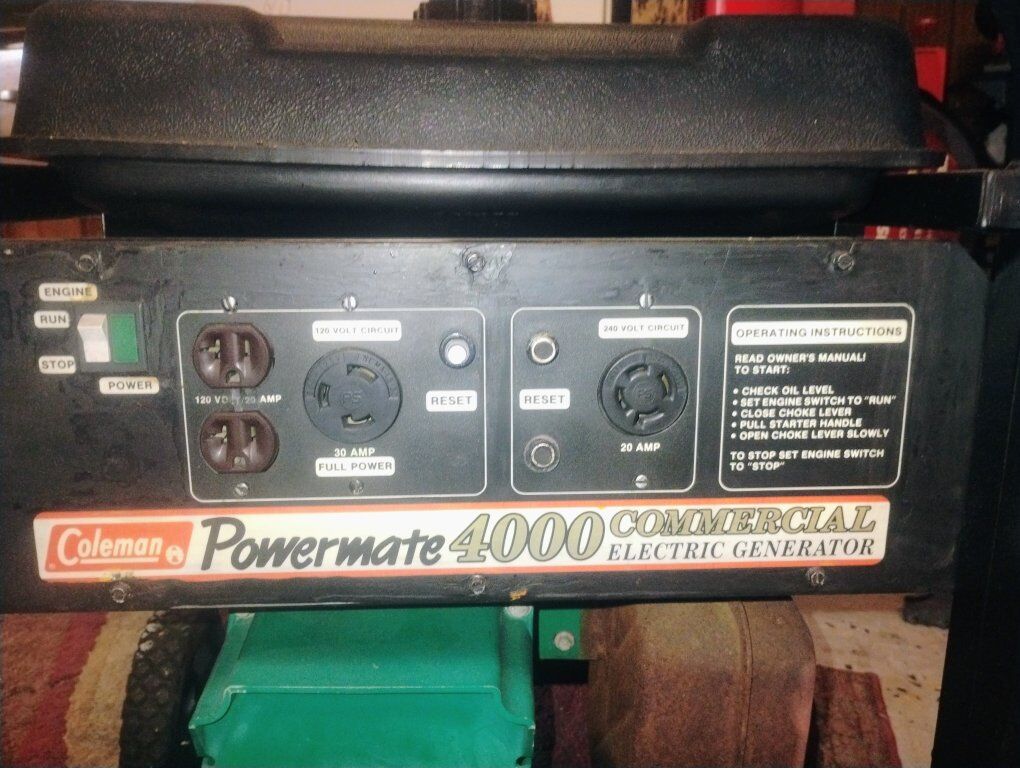 this things will last forever. 4000 Coleman powermate had 240v 20amp, 120v 30 amp and 2 20amps plugs. changed the fuel filter and cleaned the tank and carb. the carb paper gasket needs replace or sealed by 3 yr old help me there! cheap fix for a great power source. stored inside and adult owned